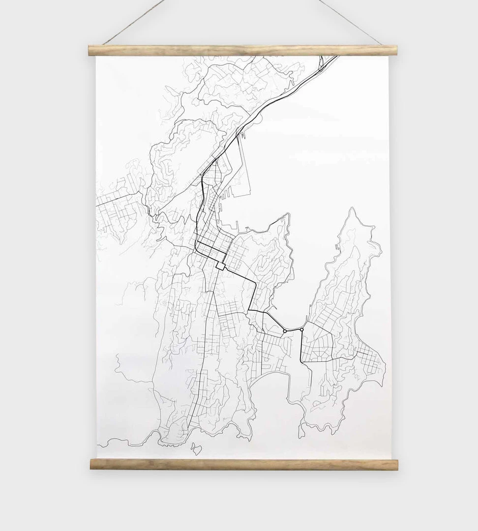 This vintage style Map of Wellington wall chart is mounted with aged wood batons and cotton rope, giving it a gorgeous nordic feel. The polyester canvas print is archival quality and won’t fade in the sun.