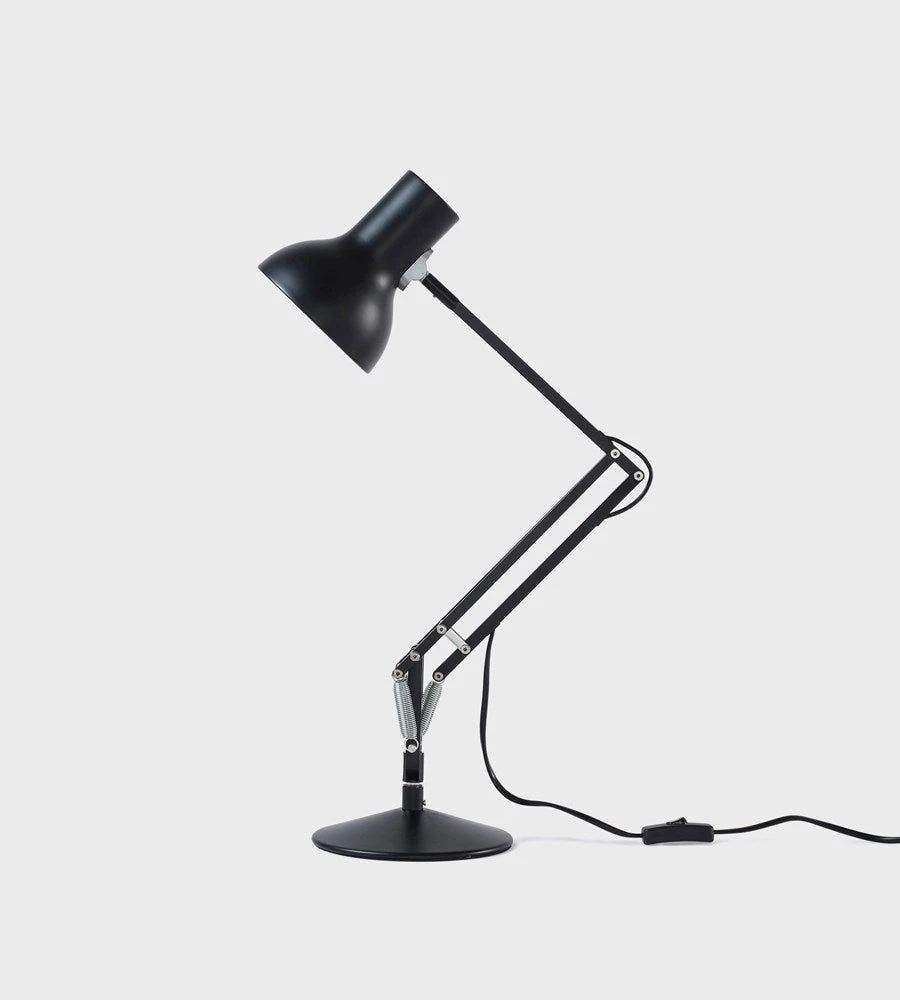 Turn on the light, and the quintessentially British charm – all in the flick of a switch with the Type 75 Mini Desk Lamp in jet black. This iconic Anglepoise Lamp’s perfectly balanced modernist form, and cheeky anthropomorphic demeanour will brighten your mood, and light up your home. Now available online, and in selected stores.Note: this product has been updated with a new model that houses the switch in the head of the lamp.