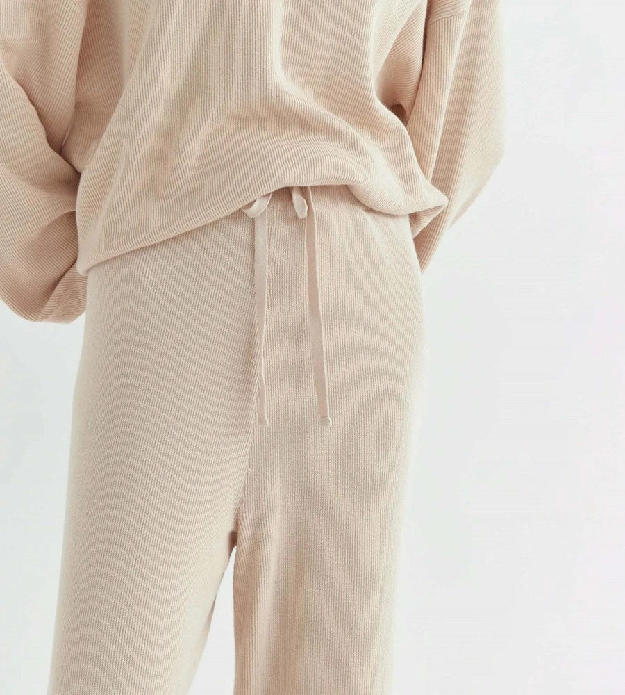 Assembly Label’s Ainsley Knit Pant is a much-loved silhouette in a lighter fabrication. This piece is a luxurious option for comfort dressing. This style has a soft, wide waistband for ultimate comfort and is crafted from a cosy blend of natural 100% cotton. The model is wearing a size 8 and is 173cm tall with a 61cm waist. To get a similar relaxed fit, take your usual size. Made in China.
