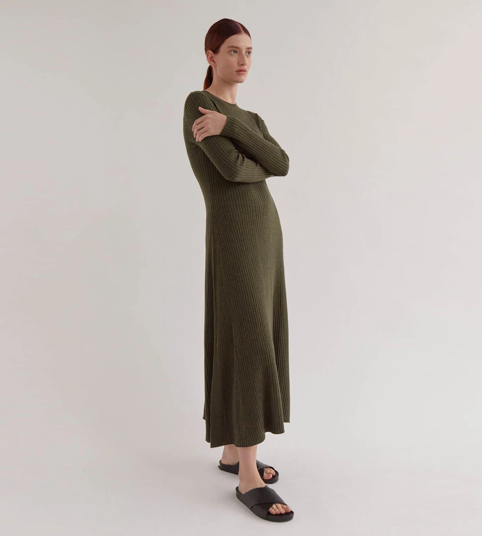 The Ella Long Sleeve Knit Dress is a minimalist and relaxed design made from 100% merino wool. This dress features a subtle rib and a-line skirt, making for the perfect desk to dinner outfit. Featuring a relaxed and comfortable fit.Â