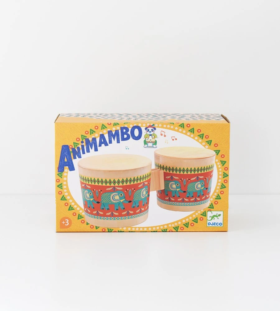 Get your children exercising their musical muscles with this Animambo Bongo Drums set from Djeco! Full of colourful design work and unique elephant illustrations, these bongo drums are made with a solid wood construction. Brilliant for encouraging rhythmic musical tendencies.