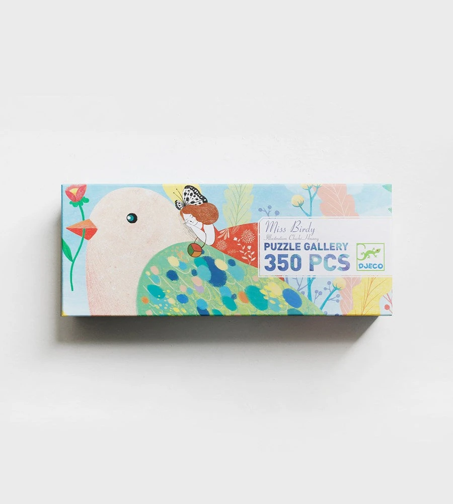 Miss Birdy is a 350-piece puzzle gallery where little girls and birds come together in a vibrant world of make-believe. Our illustrators went wild with an all-new, super long format! A fun and innovative way of teaching children about painting. A brand-new long format to show the illustration in all its glorious detail.