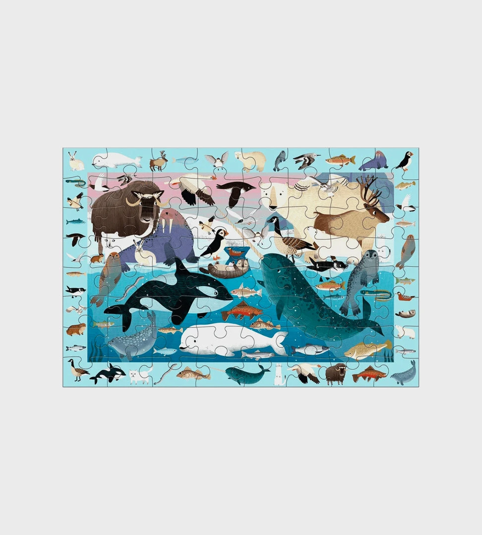 Mudpuppy’s Arctic Life Search & Find Puzzle is double the fun! First, children can piece together the 64 piece puzzle featuring diverse and colourful animals living in the arctic. After putting the puzzle together, children can test their observation skills to find the 40+ animals and fish in the border around the puzzle image. They are all there, can you find them?