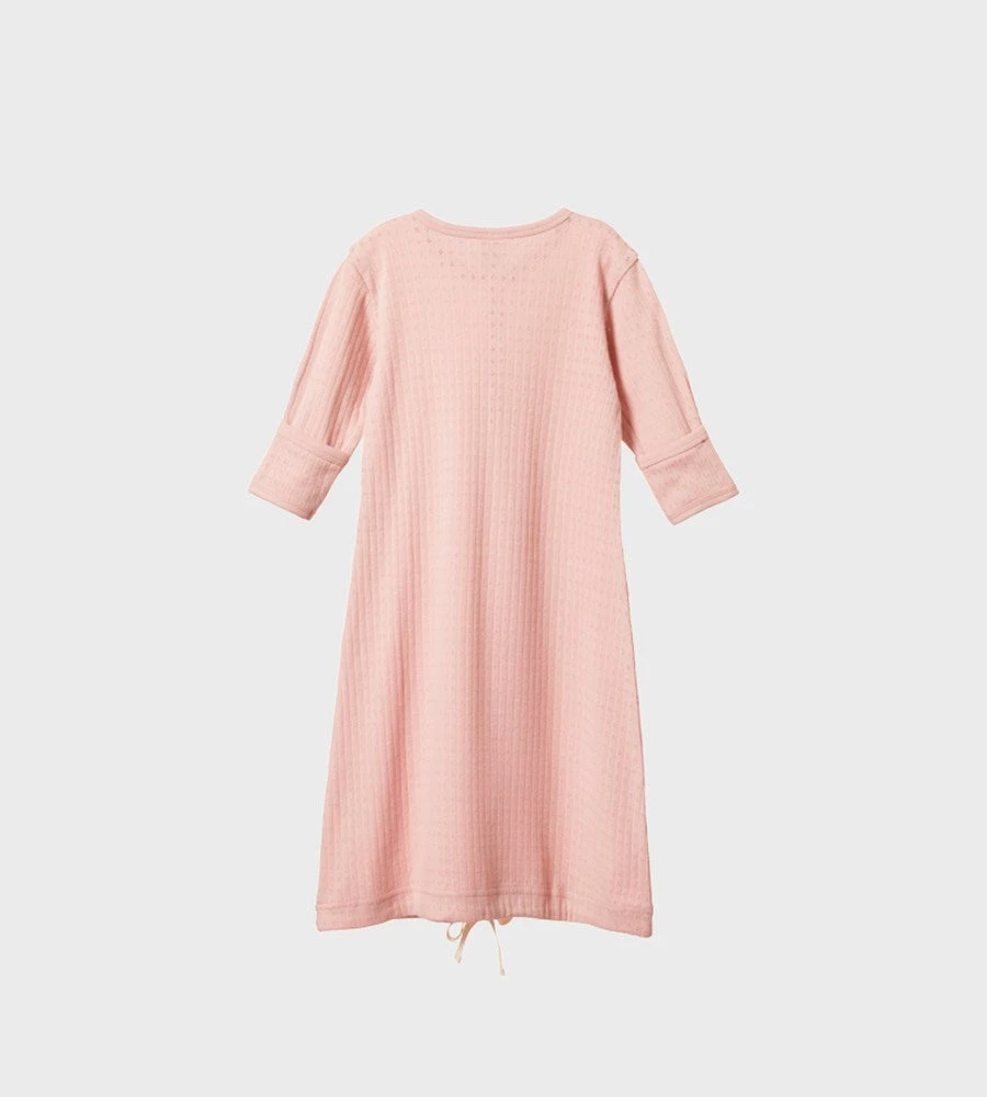 Nature Baby’s classic organic cotton gown, made in a beautiful pointelle fabric has a nostalgic quality and is super soft and stretchy. This delicate fabric is perfect for the first few weeks and months of life.
