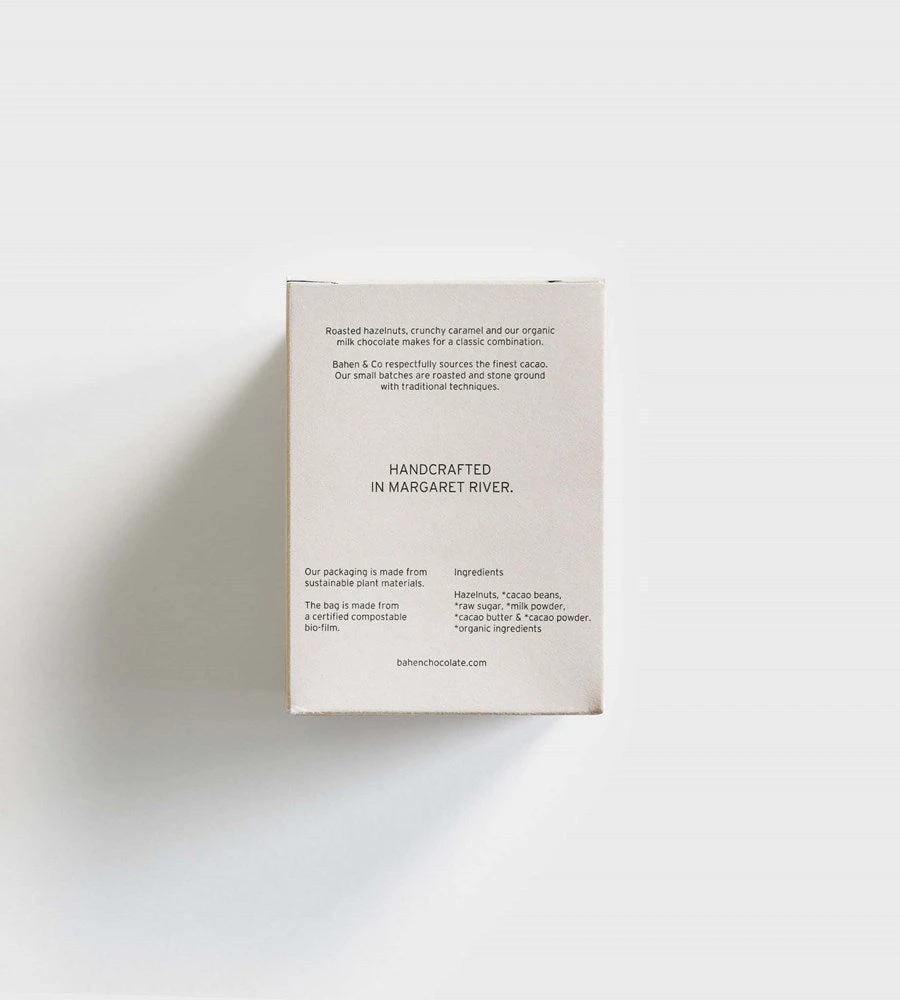 Treat a loved one or yourself with these Roasted Caramel Hazelnuts Coated Chocolate by Bahen & Co. Roasted hazelnuts and crunchy caramel paired with Bahen & Co organic milk chocolate makes for a classic combination. Packed in a fully compostable bag made from plant materials.