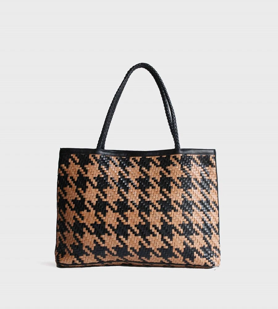 Bembien’s Gabrielle Bag is a large format carryall bag made with handwoven leather in a graphic houndstooth. The Gabrielle is up to the task of carrying your hardcover copy of Jane Austen or Infinite Jest, yet is in a buttery leather that feels light on the shoulders. Perfect for weekend trips when you need to toss all your odds and ends in one stylish tote, or for those increasingly frequent days when you need a bag that can handle whatever the day brings.