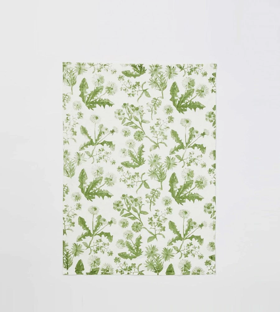 Bonnie and Neil’s Dandy Sage tea towel features original artwork by Bonnie, hand screen printed on white linen.