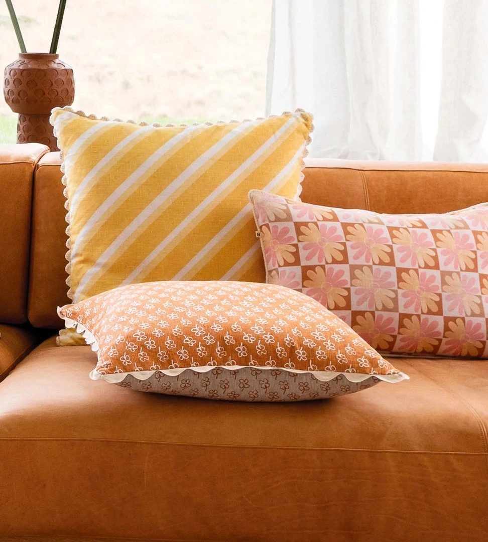 Bonnie and Neil’s cushions have the most impact when styled together using complementary designs, trims and colours.