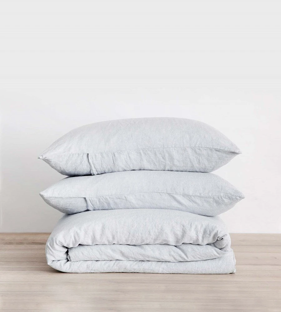 This beautiful Cultiver Linen Duvet Cover in Sky is crafted from 100% linen, pre-washed for softness. Finished with a button closure and internal ties in each corner to secure your insert.Â