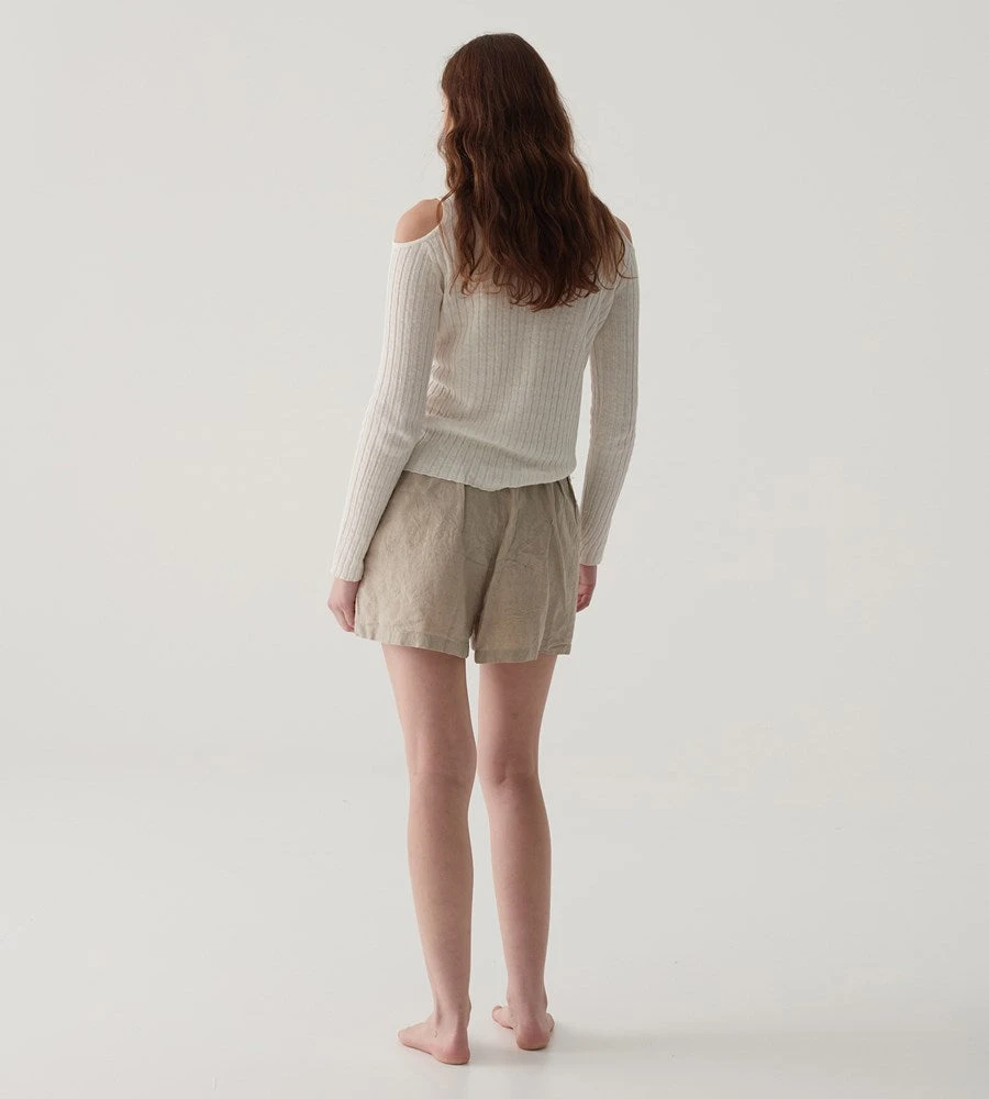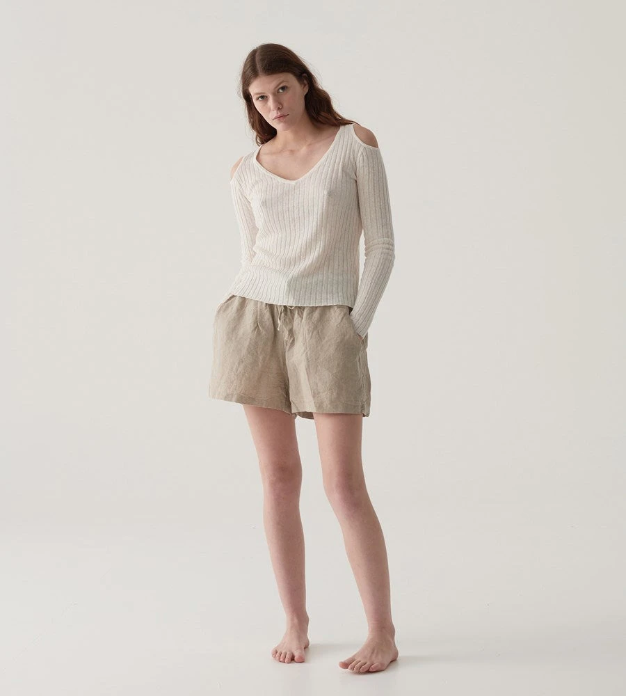 Beautiful French linen shorts cut for a relaxed look. Lightweight and minimal, they feature an elasticised waist, tie feature and are a pull on style.