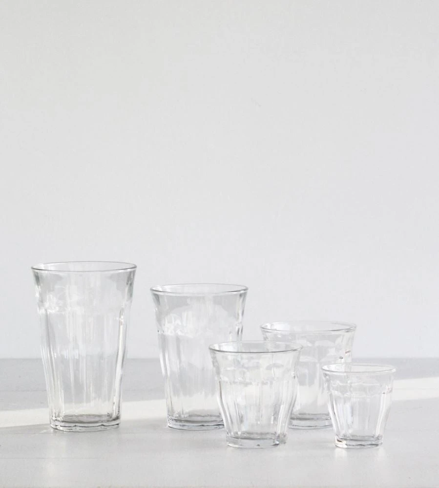 Known as the “original French tumblers”, the tempered Picardie glasses are functional and stylish. Designed in 1927 and produced by Duralex since 1945 they’ve become the standard glass in French bistros. The Picardie gets its name after the Picardie province in northern France, a region known for being the heartland of French gothic cathedrals. It feels extremely comfortable in your hand, and is perfect for anything from ice cold water, to freshly brewed tea or coffee.