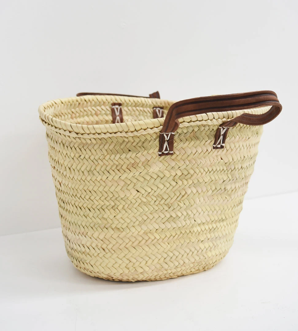 This beautiful basket is handwoven by farmers in Morocco using fallen palm fronds. It provides income during the winter when there are no crops. As such, each basket is unique.