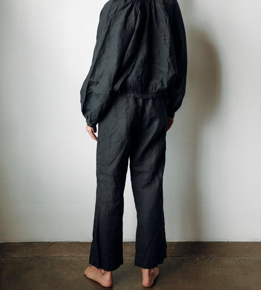 Cut for a relaxed fit that will take you from the bedroom too beyond. These Des Sen pants have a comfortable elasticated waist and mid-rise, and are slightly tapered through the leg for a neat finish.