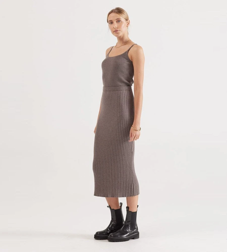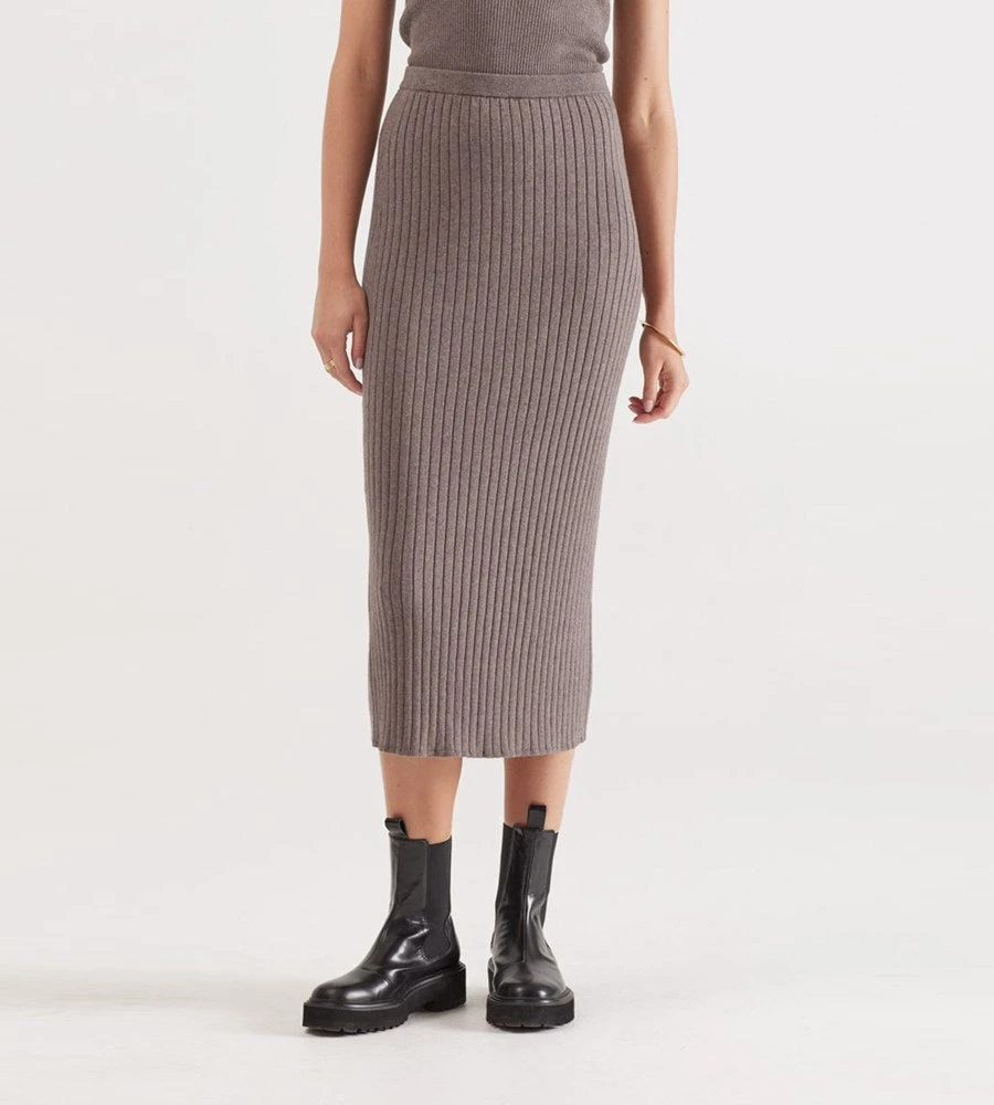 Elka Collective’s Lois Knit Skirt is crafted in a luxurious cotton cashmere blend with a cosy handfeel. A snug straight fit – it features an elastic waistband and a ribbed body construction. The outfitting options for this skirt are endless and will carry through year-round.