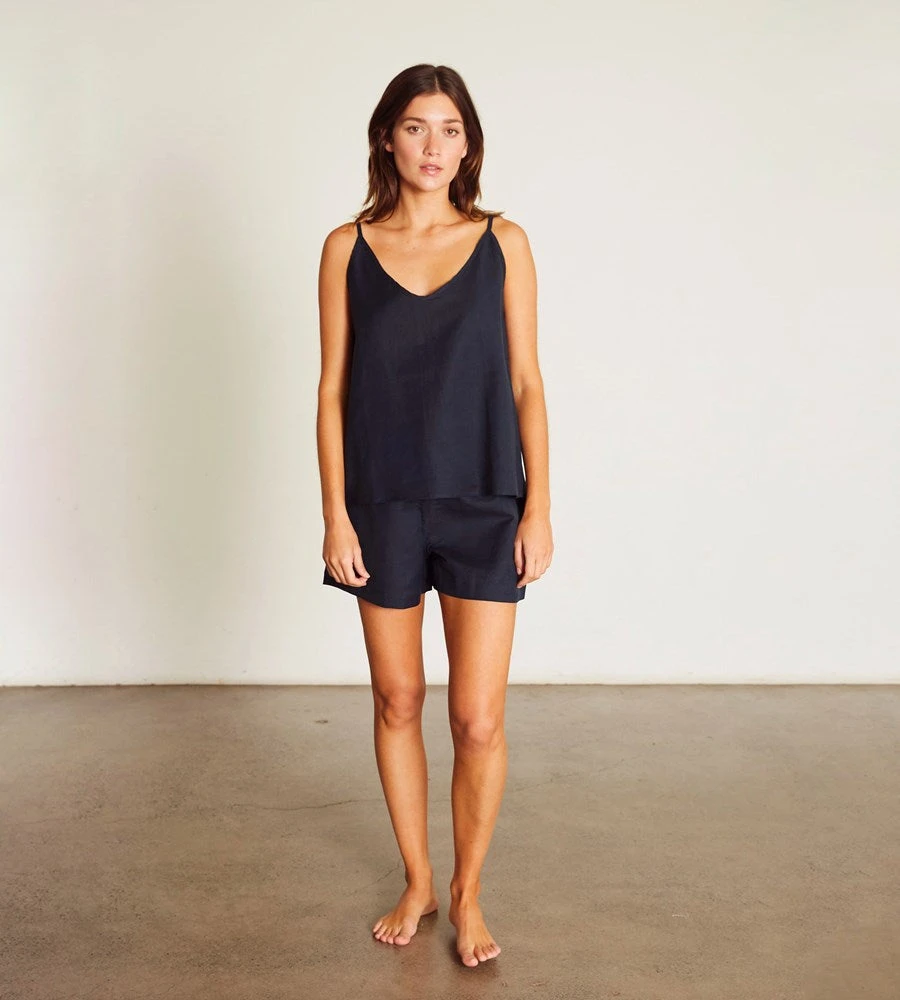 General Sleep’s Summer Set has a swing style camisole with relaxed fit shorts. Elasticated waistband featuring drawstring detail. All pieces are french seamed.