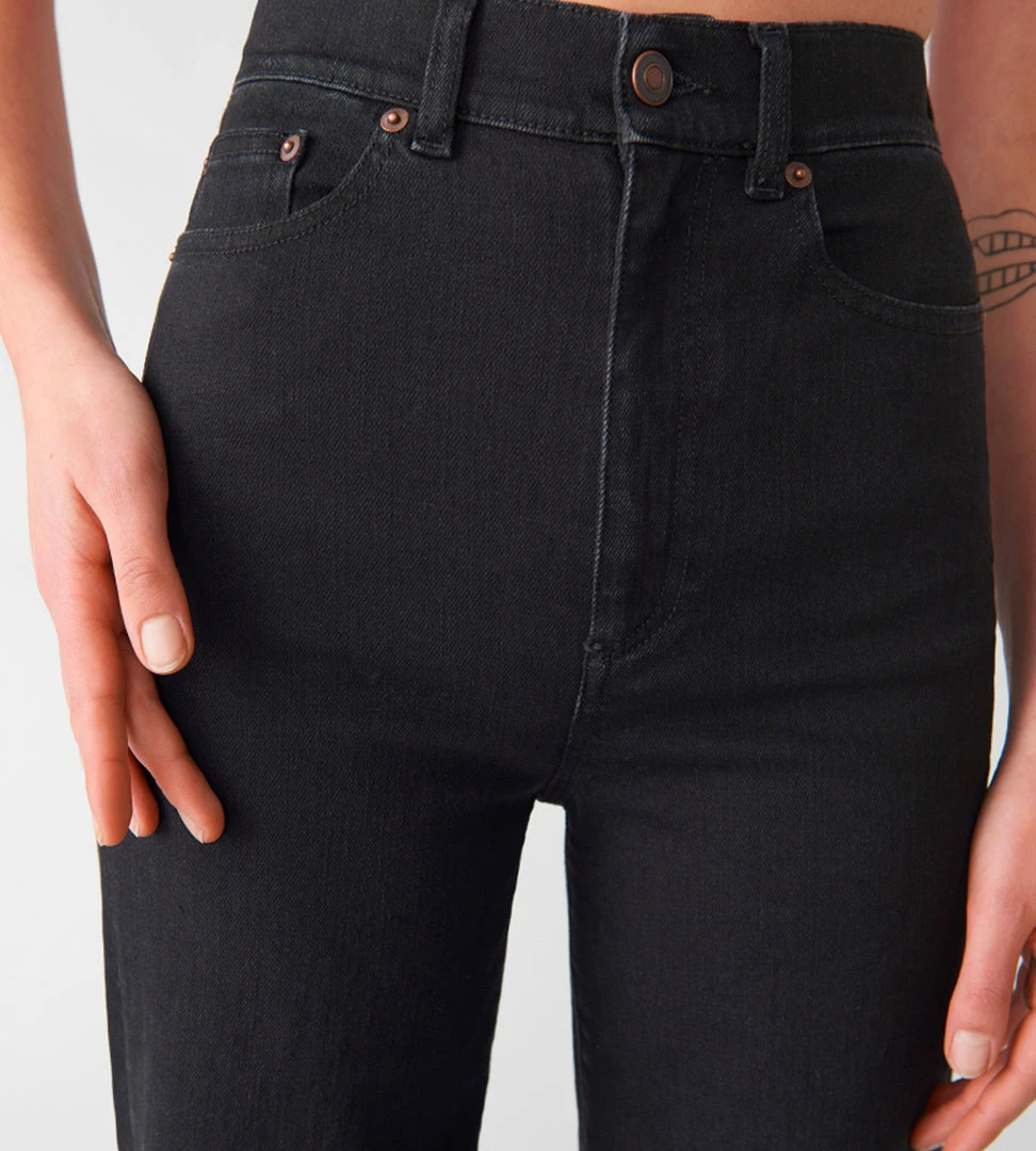 Jeanerica’s Pyramid Jean is a super high rise jeans featuring straight thigh, flair leg, full length and zip fly closure.