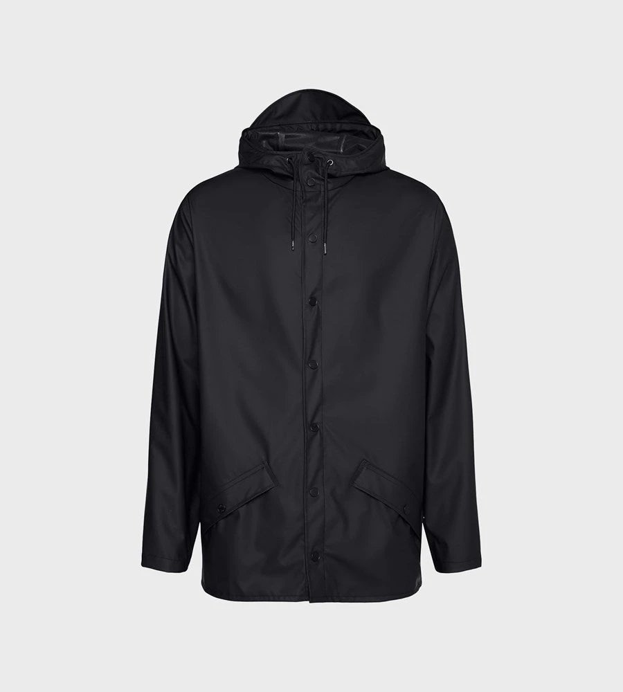 The Rains ‘Jacket’ is a functional and casual outerwear piece, a contemporary unisex rain jacket silhouette. As the name indicates it’s a basic style, an urban version of a conventional jacket with classic rainwear details such as the storm shield and snap buttons at the sleeve hem. The fabric is lightweight with a matte surface and a soft hand feel, very pliant and therefore easy and comfortable to wear.
