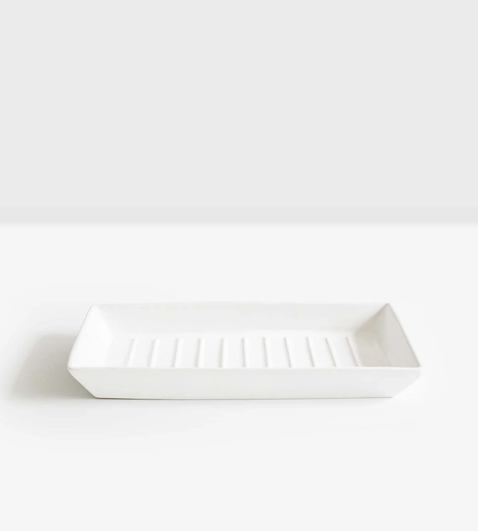 This classic Bath Platter is designed to keep all your bathroom luxuries ordered, and well presented whilst still being at hand. The ridged platter can hold liquid soap bottles, soaps, lotions, perfumes or even your favourite scented candle. The crisp, white glaze of the platter has been designed with both classic and contemporary bathrooms in mind.