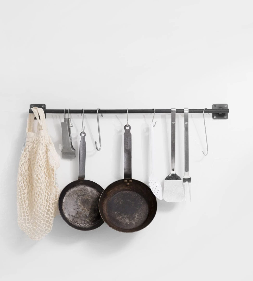 This utility rack is crafted from raw waxed steel and is a handy addition to every kitchen or laundry. Pair with S shaped hooks to make the most out of your space whether you’re hanging pots and pans or your peg basket in the laundry.