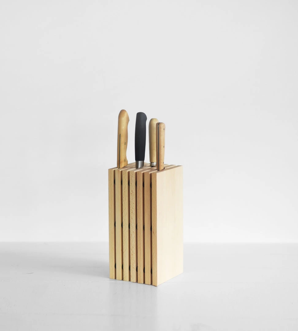 This stylish knife block is made from beechwood and is a great storage solution in the kitchen. The block easily fits two knives per slot and can hold a total of fourteen knives.