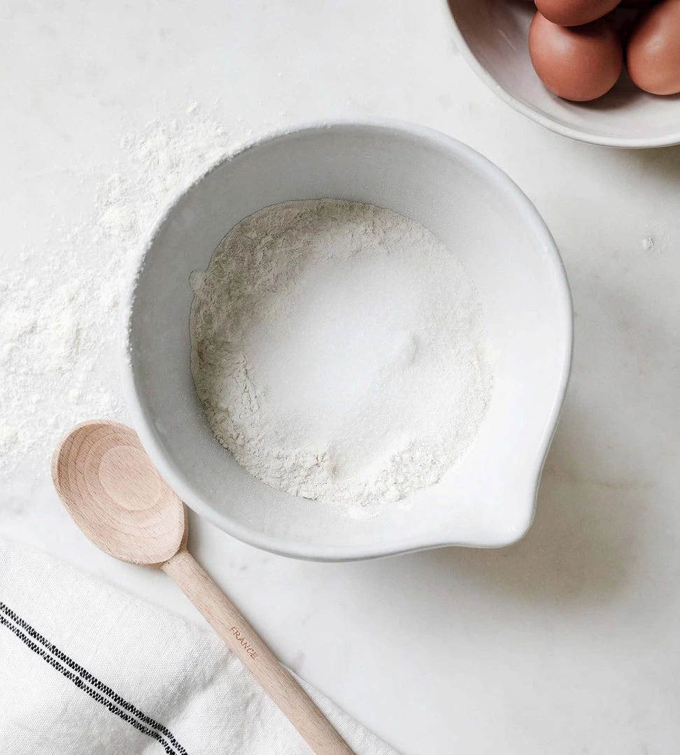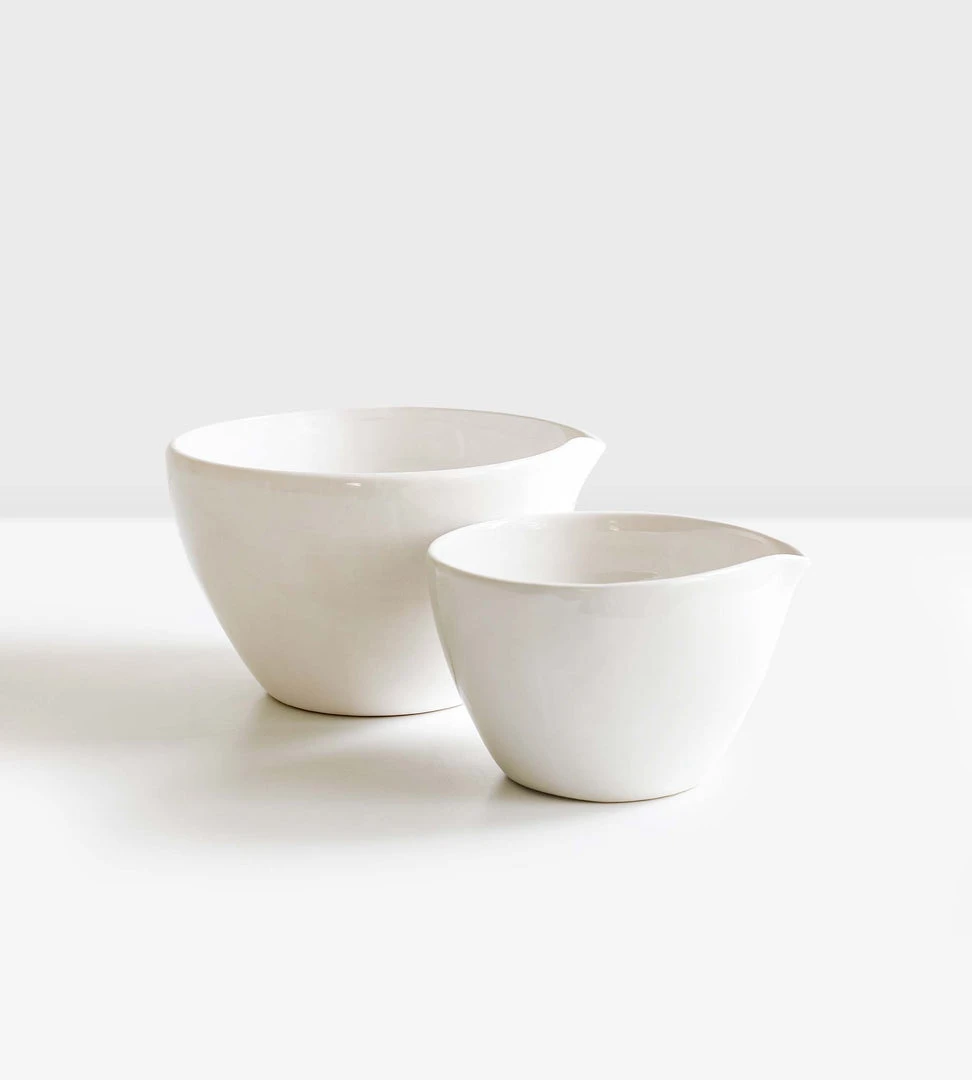 Perfectly simple rustic white mixing bowls with pourer for your everyday needs.