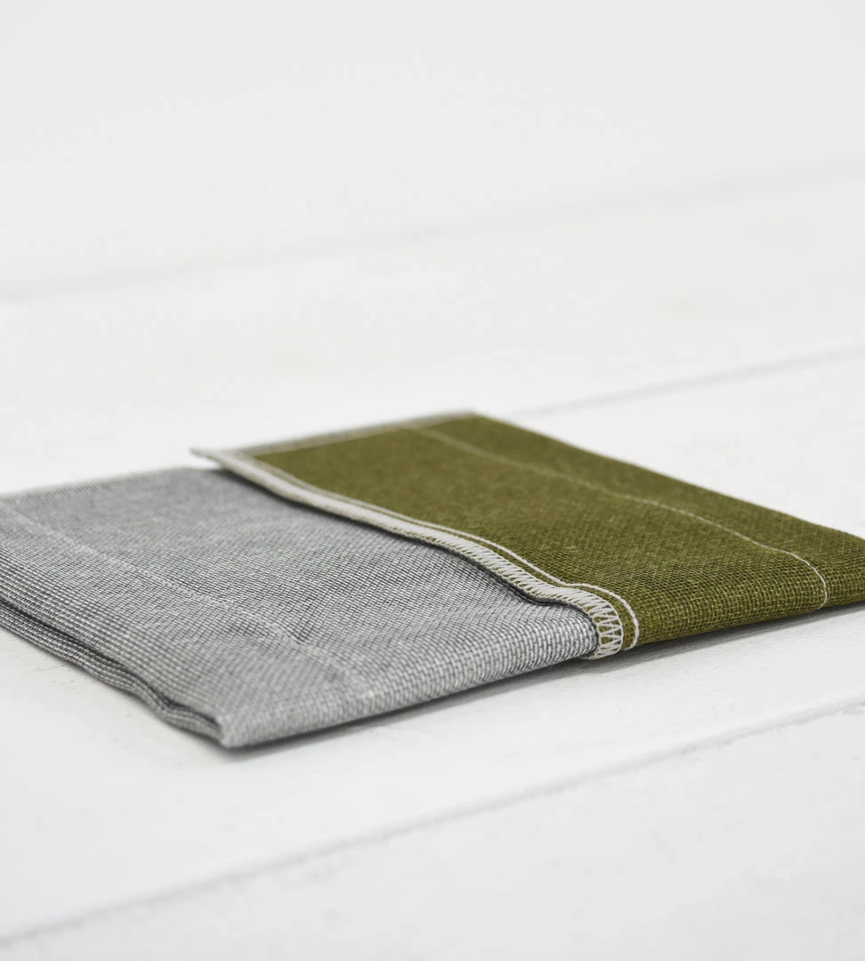 These R.I.B Dishcloths are made of weaved rayon yarn that is infused with binchotan charcoal. Binchotan is the highest grade of charcoal, and is prized for its natural purification properties. The infused binchotan works to naturally absorb odor and bacteria that would typically accumulate within a dishcloth. One side of each cloth features a dyed colour, and the other side is natural, binchotan grey. These dishcloths have six layers of material.