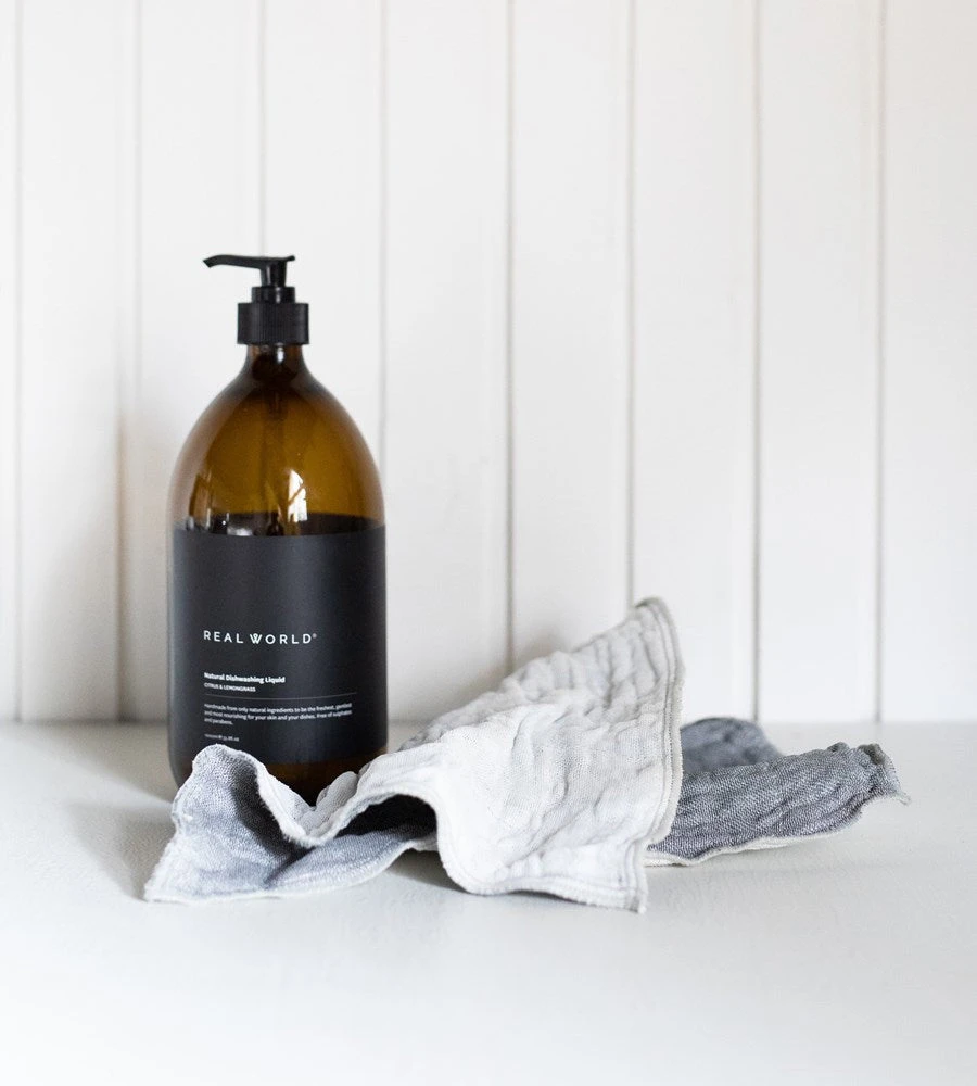 These R.I.B Dishcloths are made of weaved rayon yarn that is infused with binchotan charcoal. Binchotan is the highest grade of charcoal, and is prized for its natural purification properties. The infused binchotan works to naturally absorb odor and bacteria that would typically accumulate within a dishcloth. One side of each cloth features a dyed colour, and the other side is natural, binchotan grey. These dishcloths have six layers of material.