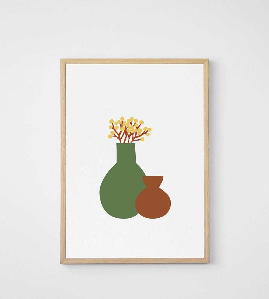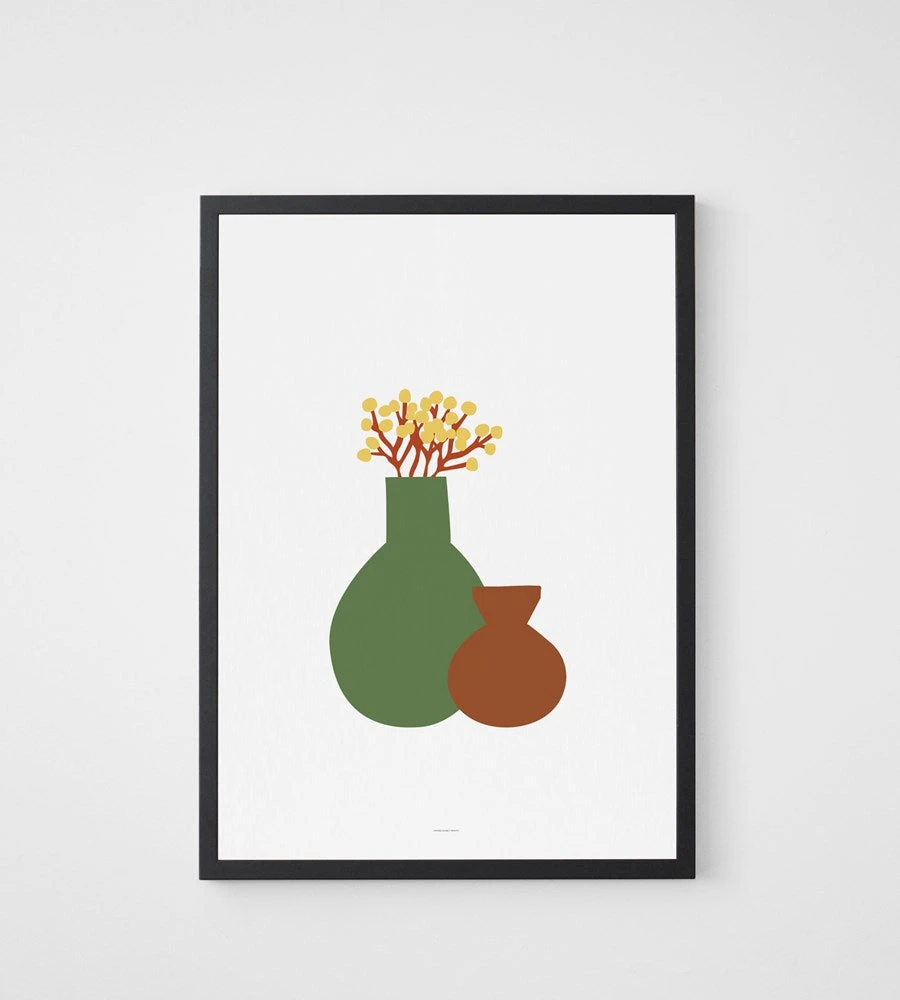 Our still life vases print looks lovely in the home. We love the solid shapes and colours in this print and think this looks wonderful displayed in the dining room.