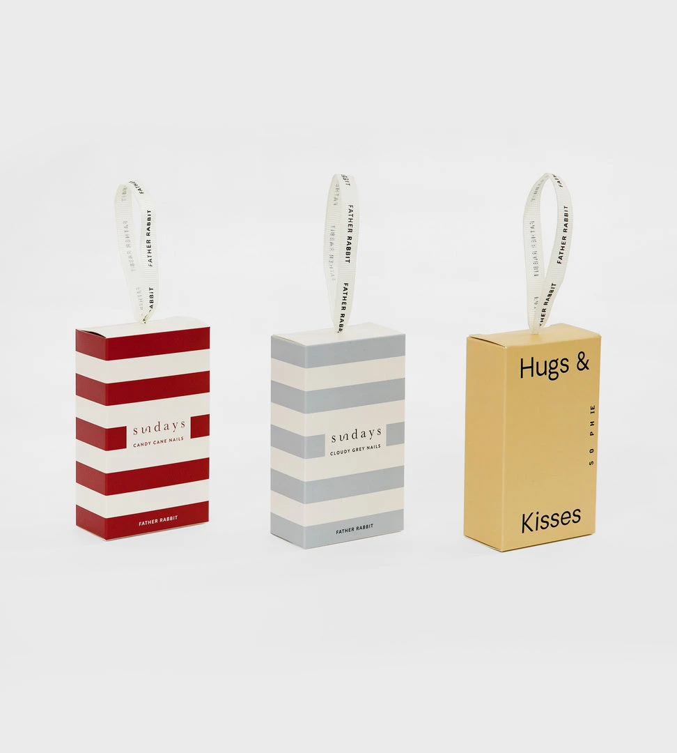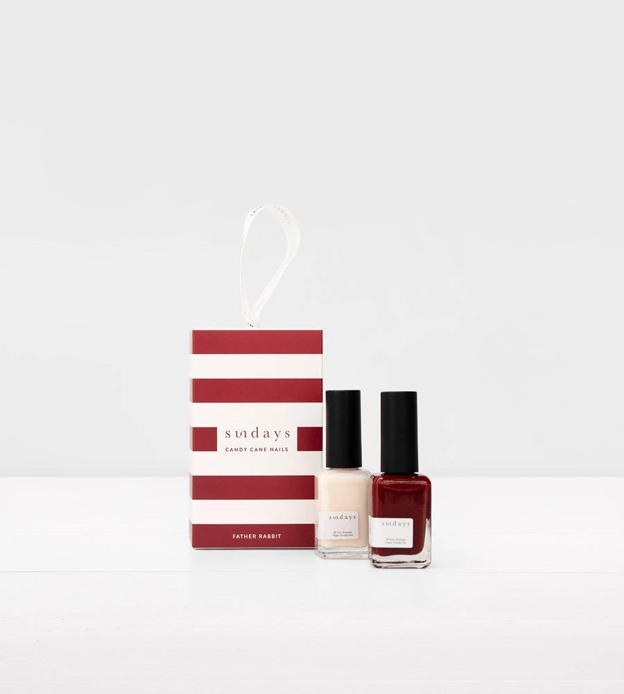 An adorable little gift box decoration to hang from the Christmas Tree! Father Rabbit’s Candy Cane Nails gift box is a wonderful grab and go gift for her. It includes two of Sundays non toxic nail polishes in timeless shades.