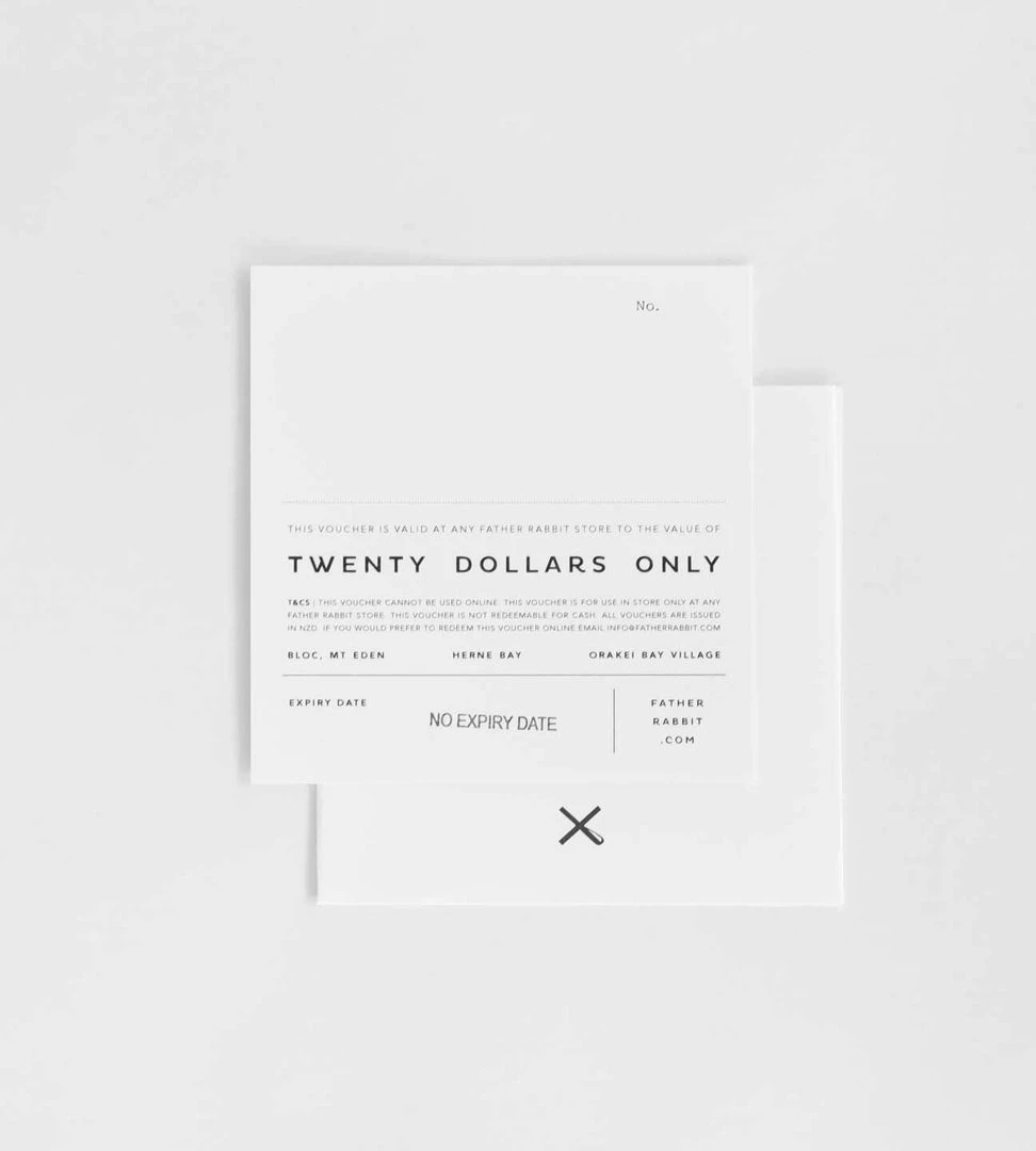 Please note that this voucher is for the Father Rabbit physical stores in Auckland only*. This voucher is has no expiry date. All vouchers are issued in New Zealand dollars.
