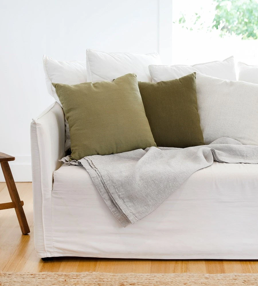 A simple and soft linen cushion in a deep moss green colour. Use to accessorise any interior space.