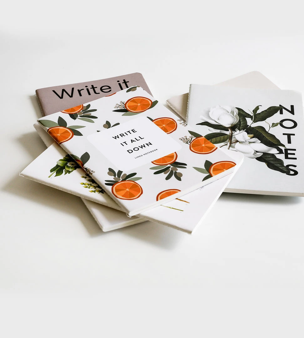 A handy, soft cover A5 notebook that is the perfect size to keep in your bag, car or anywhere you need to keep some paper on hand. Designed in house at Father Rabbit.
