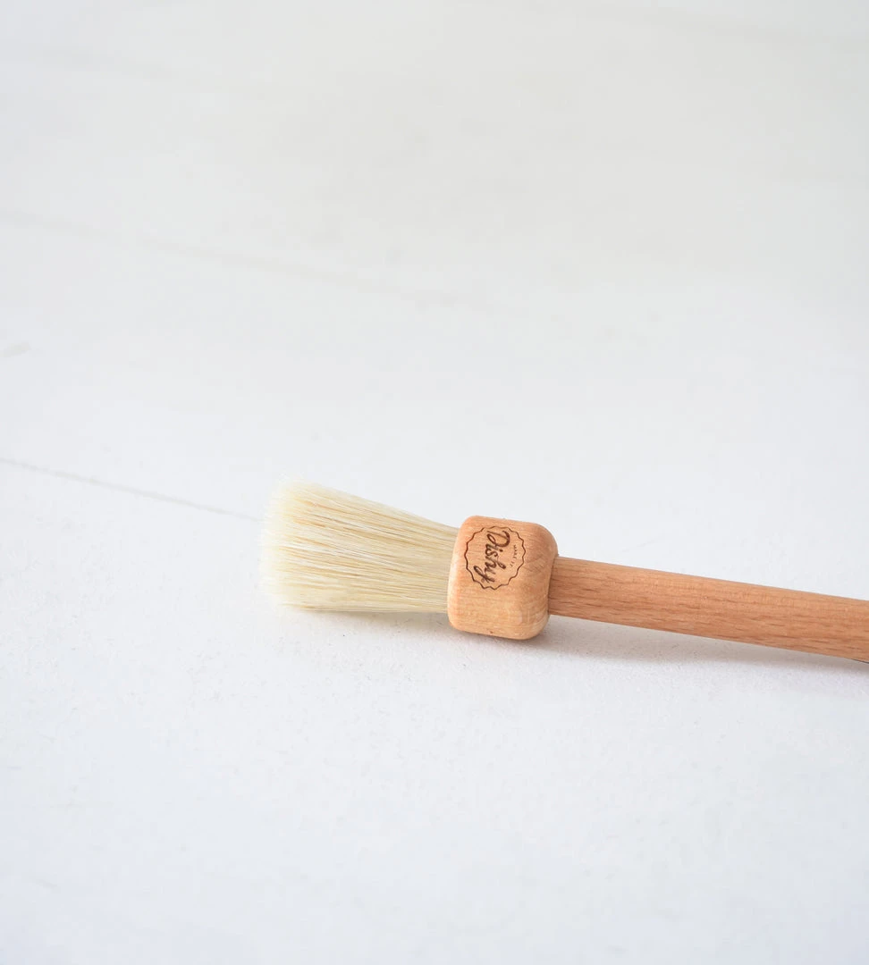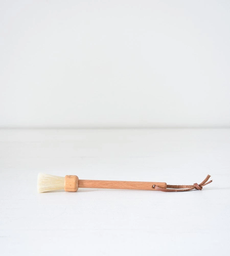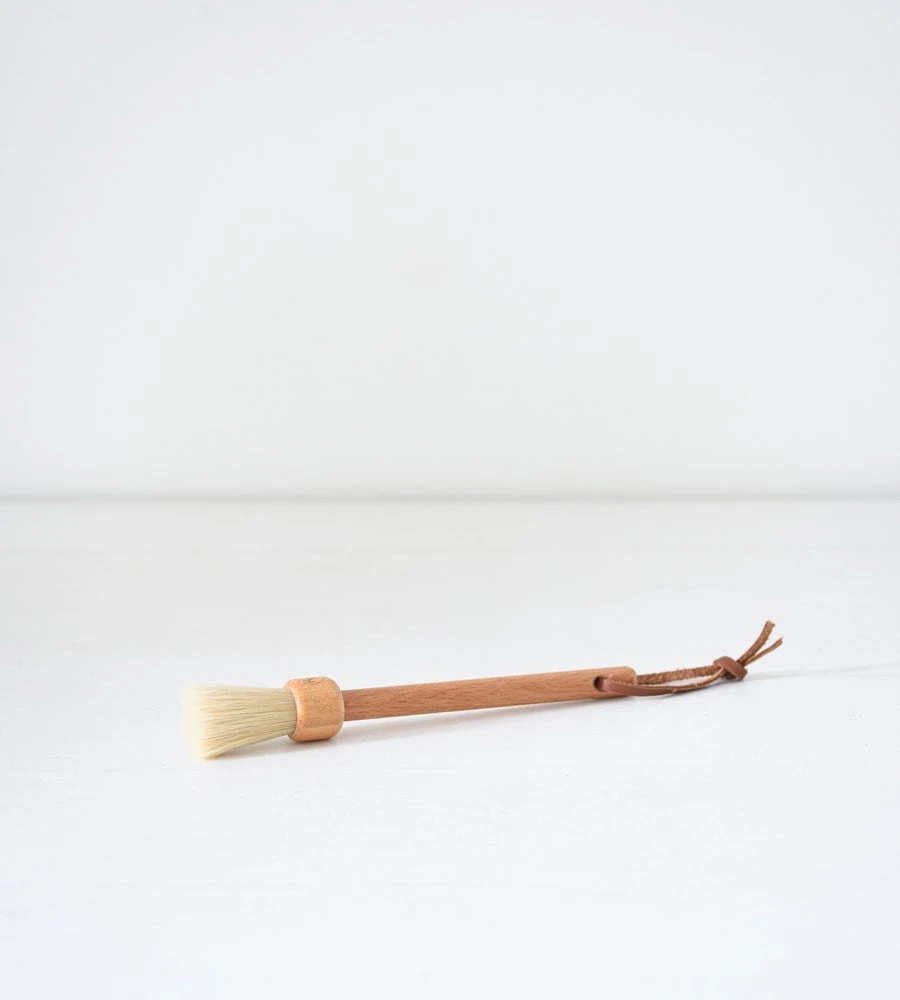 A sweet little round brush that we think is the perfect size to use as a pastry brush. Crafted from waxed beechwood and pure light natural bristles. Features a leather strap for easy hanging storage.