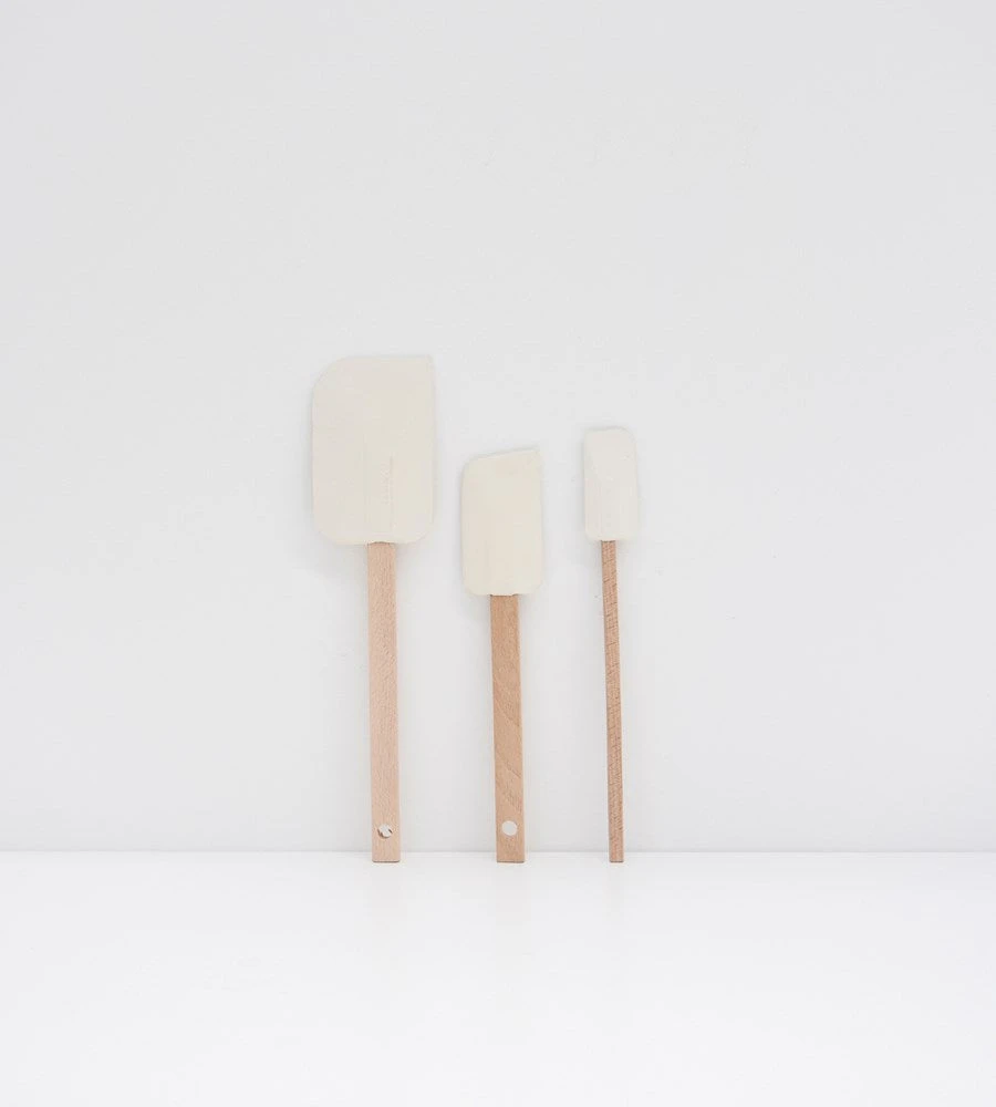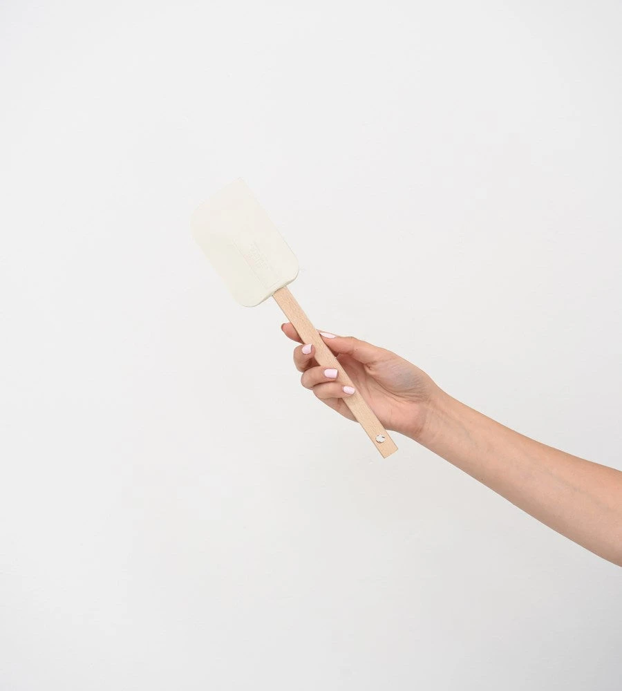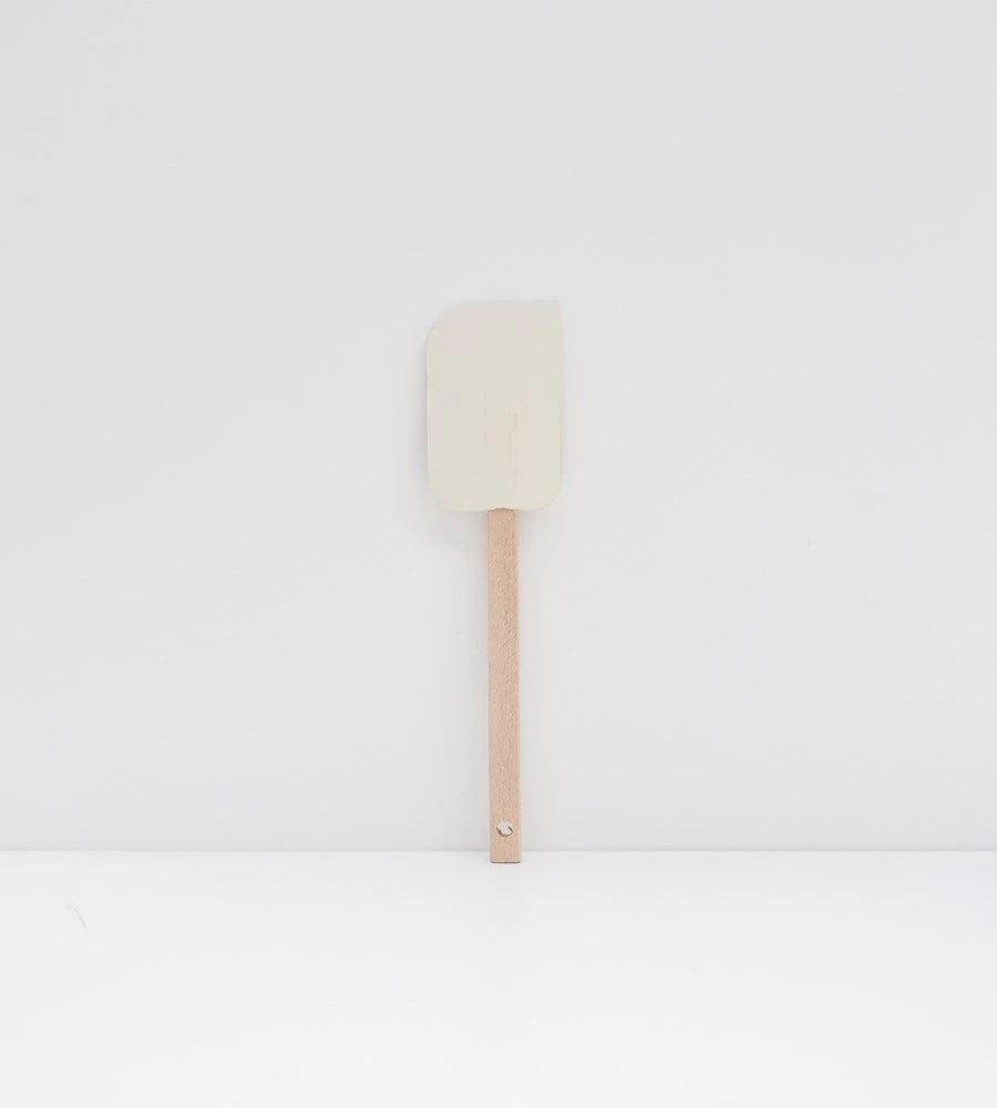 Classic essential rubber spatula. Wooden Handle, white rubber.