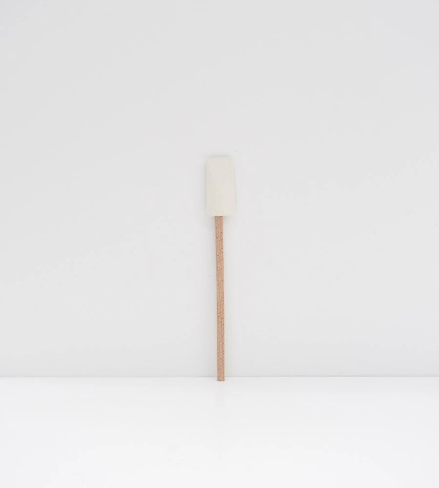 This thin rubber spatula is crafted with a wooden handle and white rubber and is the perfect tool for getting into those hard to reach places to savour every bit of your cooking.