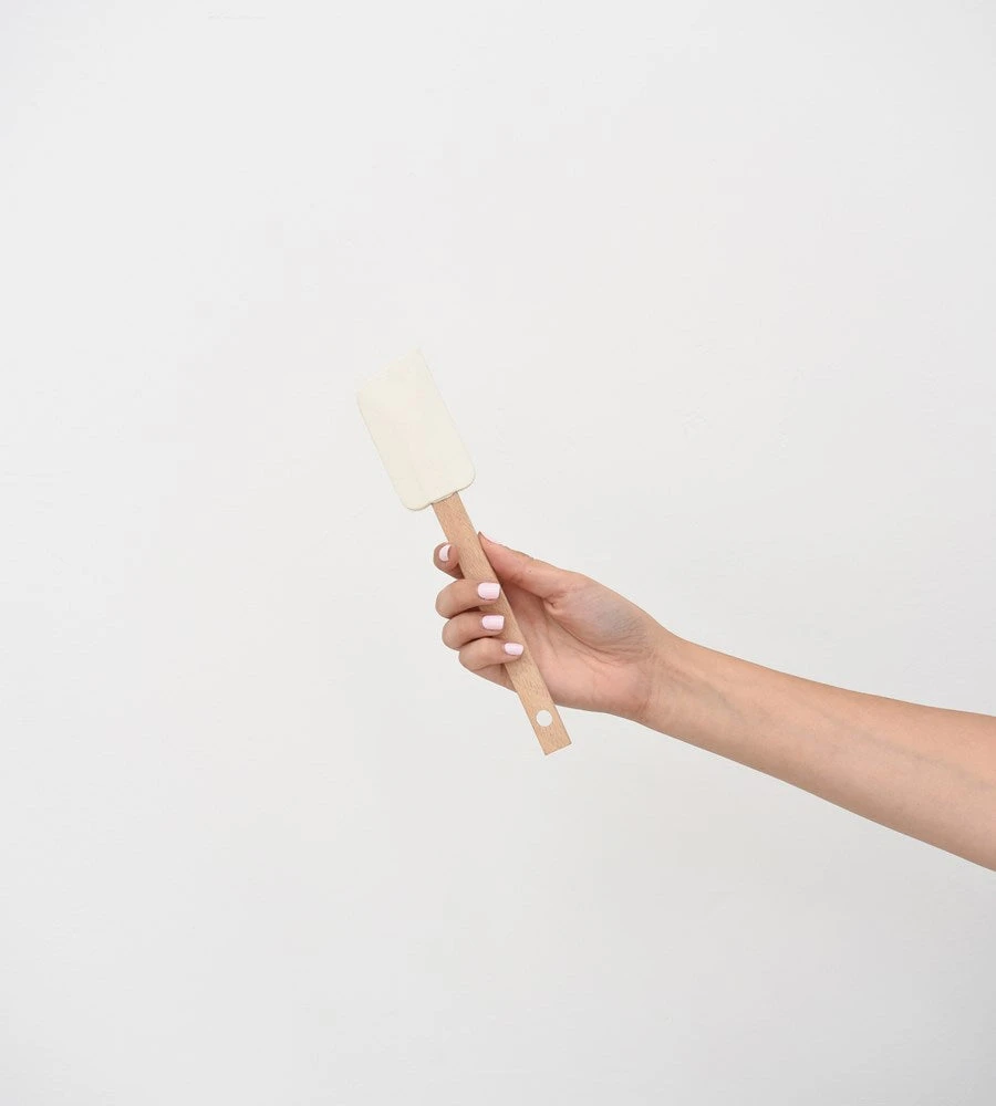 An essential in all kitchens, this classic spatula is crafted with a wooden handle and white rubber, taking care of all your baking and cooking duties.