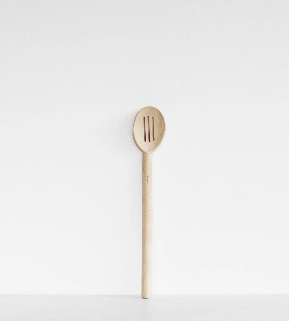This wooden spoon is the perfect utensil for stirring your pasta and noodles, with slots to drain water and other liquids.