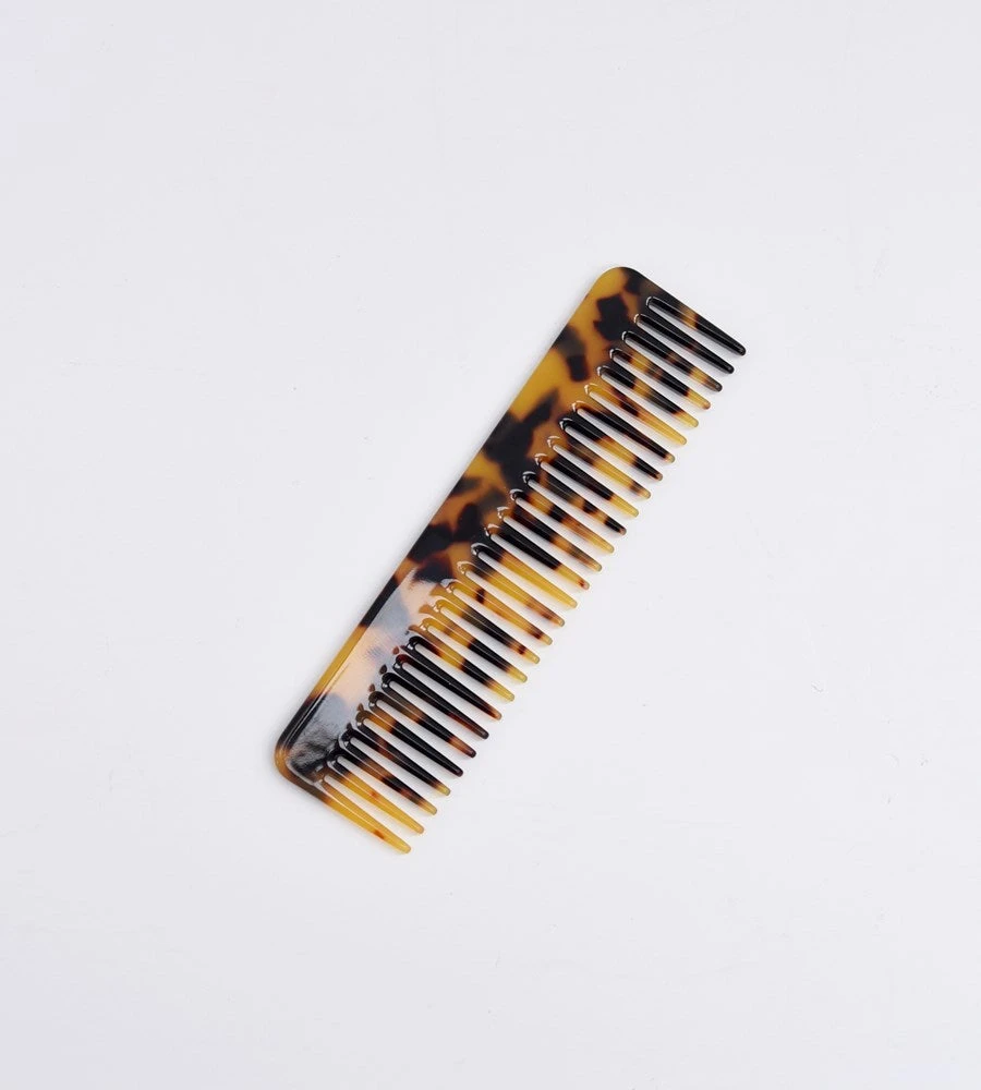 A little comb for your hair. Perfectly sized to fit inside your handbag or wallet. Available in light or dark tort. Made from 100% acetate (derived from plant based renewable resources).