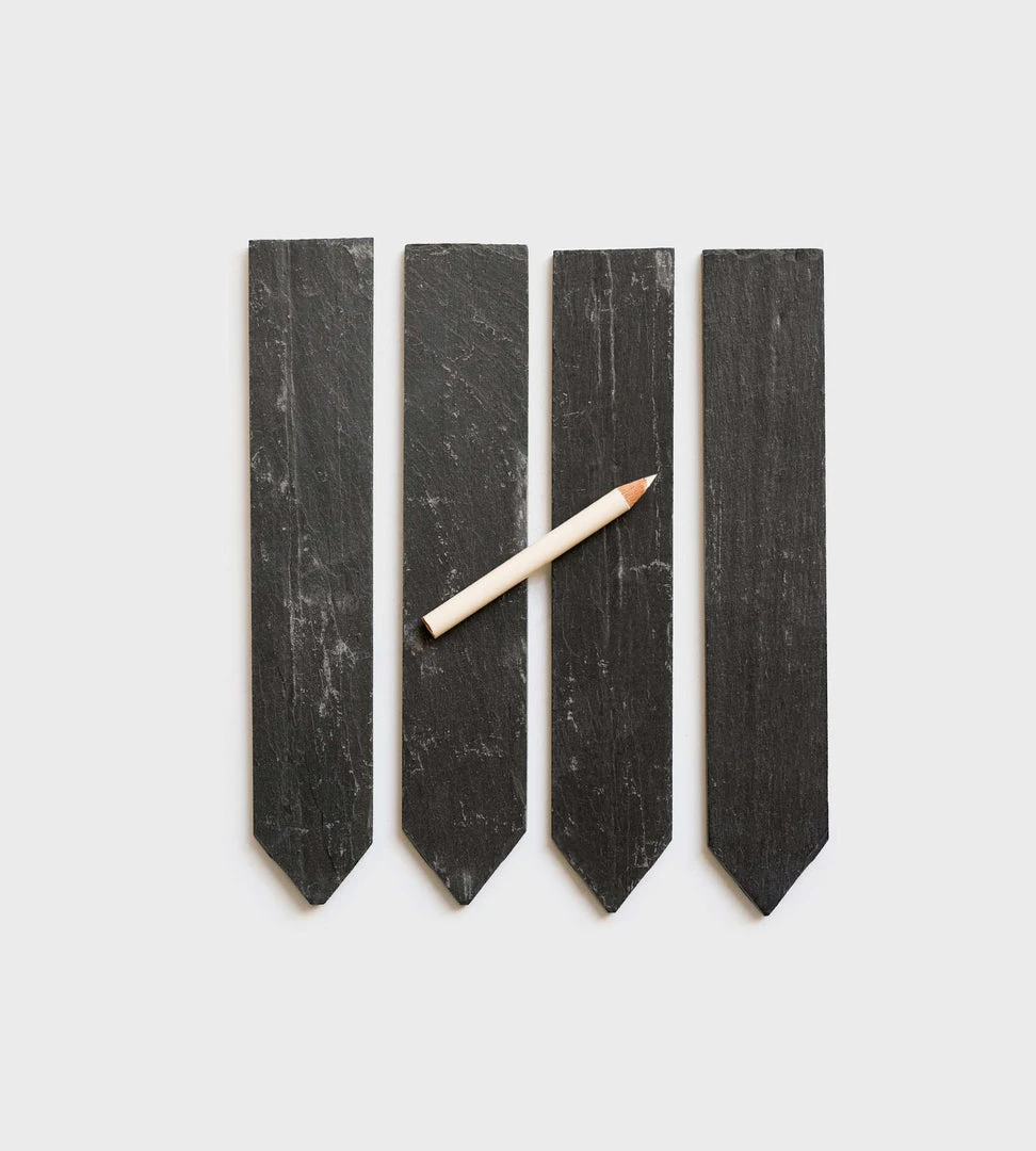 Beautiful slate labels supplied with small white pencil marker. Very durable and decorative. Pack of four including pencil.