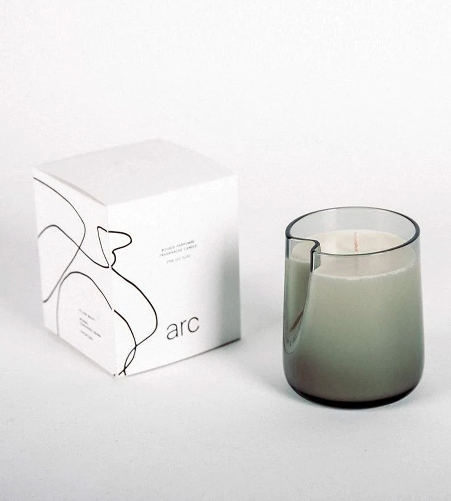 Arc’s candle glass is a sculptural object designed to be timeless and used for long after the candle has burnt down. See beauty in imperfection. The candles are mouth blown and hand poured so there will be slight variations. Arc use a natural botanical wax and a lead-free unbleached cotton wick.