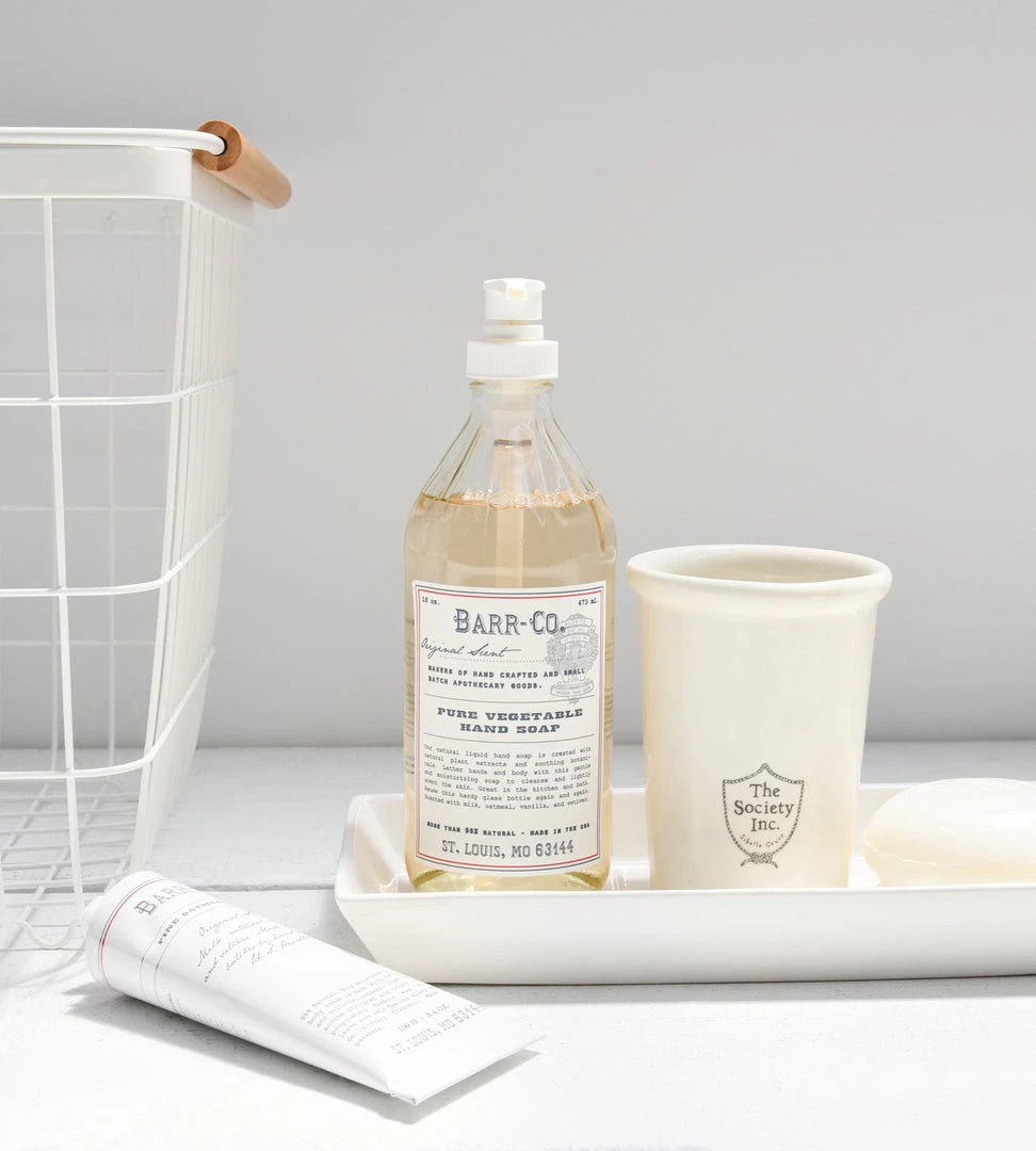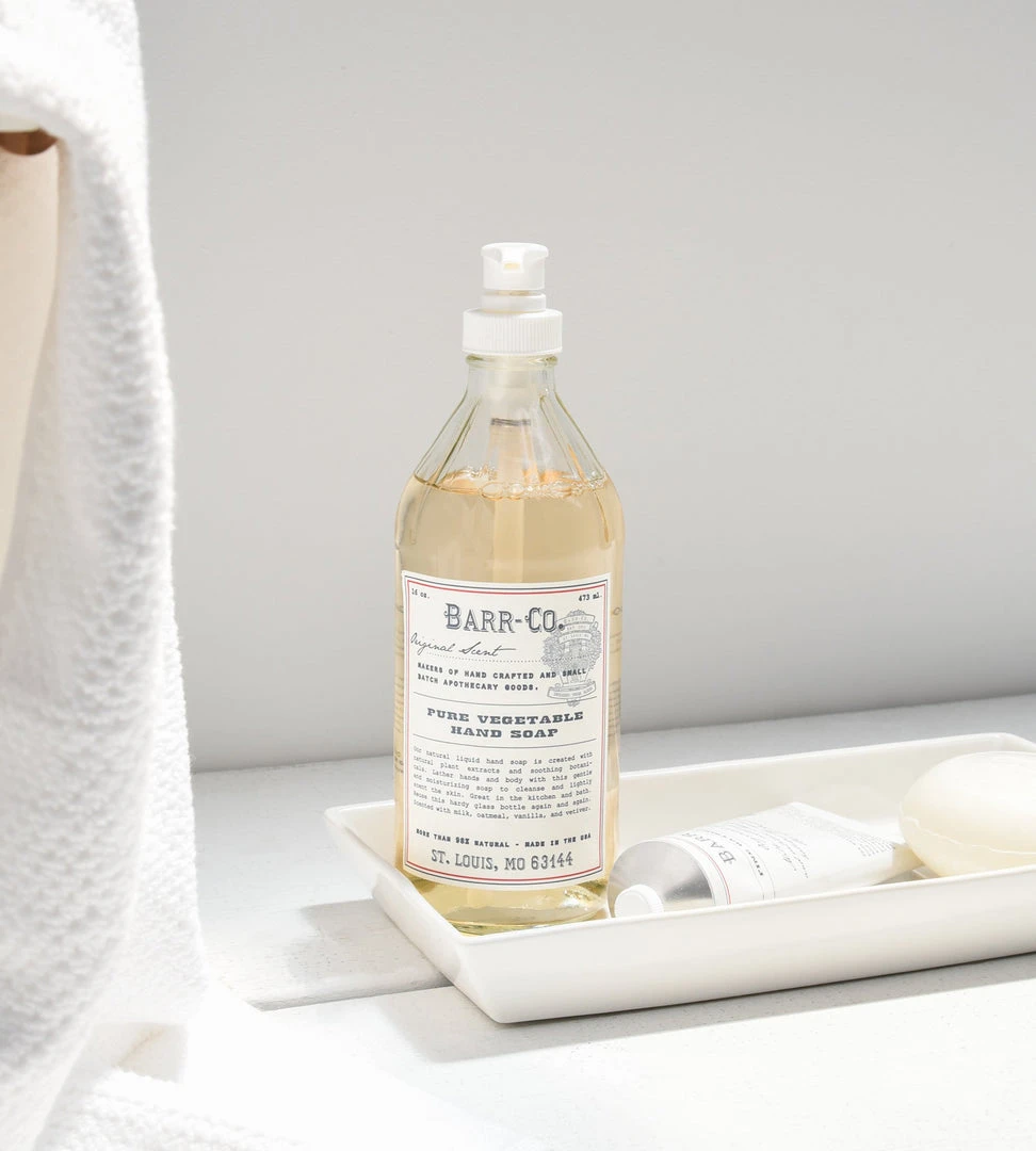 Lather hands and body with this gentle and moisturizing soap designed to cleanse and lightly scent the skin. More than 98% natural, Barr-Co’s Liquid Hand Soap is created with natural plant extracts, soothing botanicals and oatmeal extract. Great in the kitchen and bath, re-use this hardy glass bottle again and again. This vegan product contains no parabens, sulfates or petrochemicals and is handcrafted in small batches. 475ml