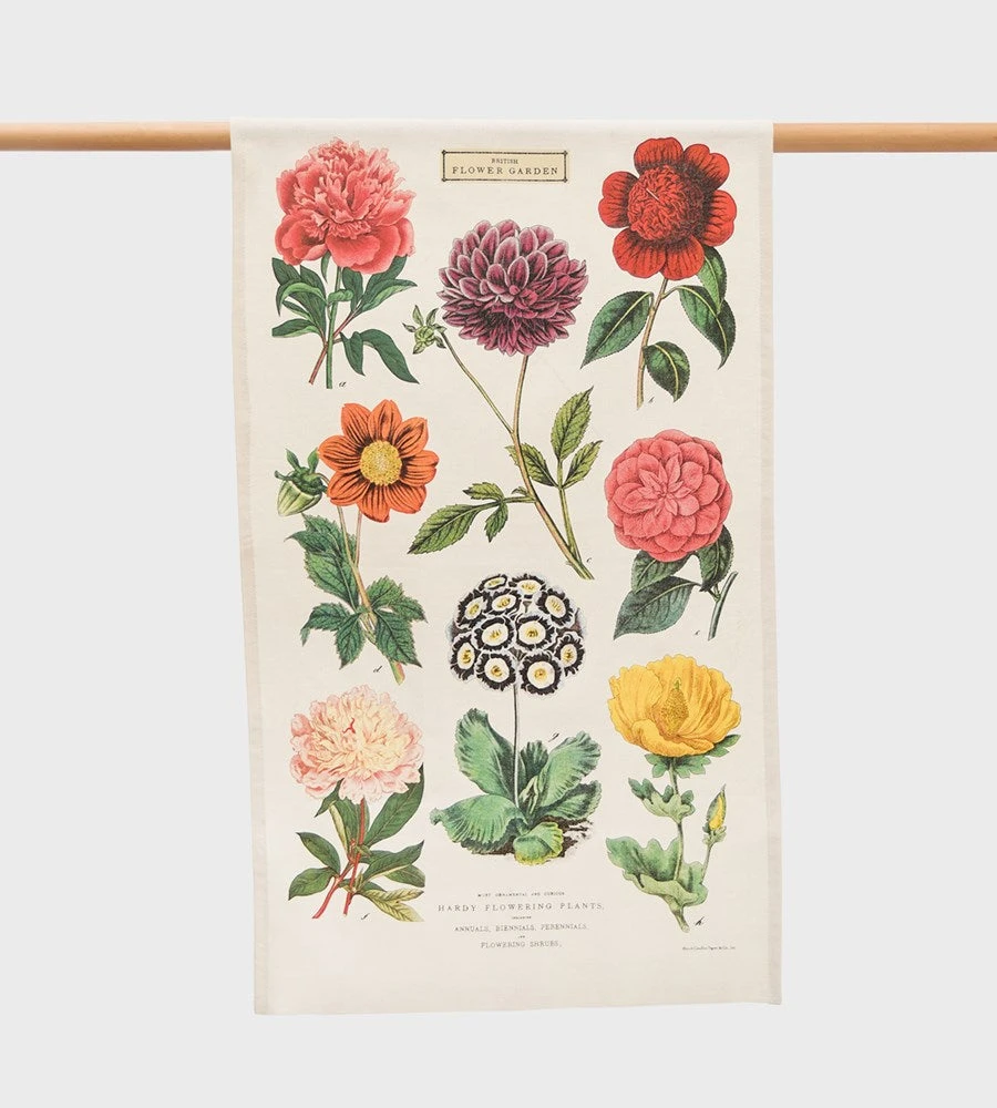 A beautiful tea towel featuring images from the Cavallini & Co. archives.