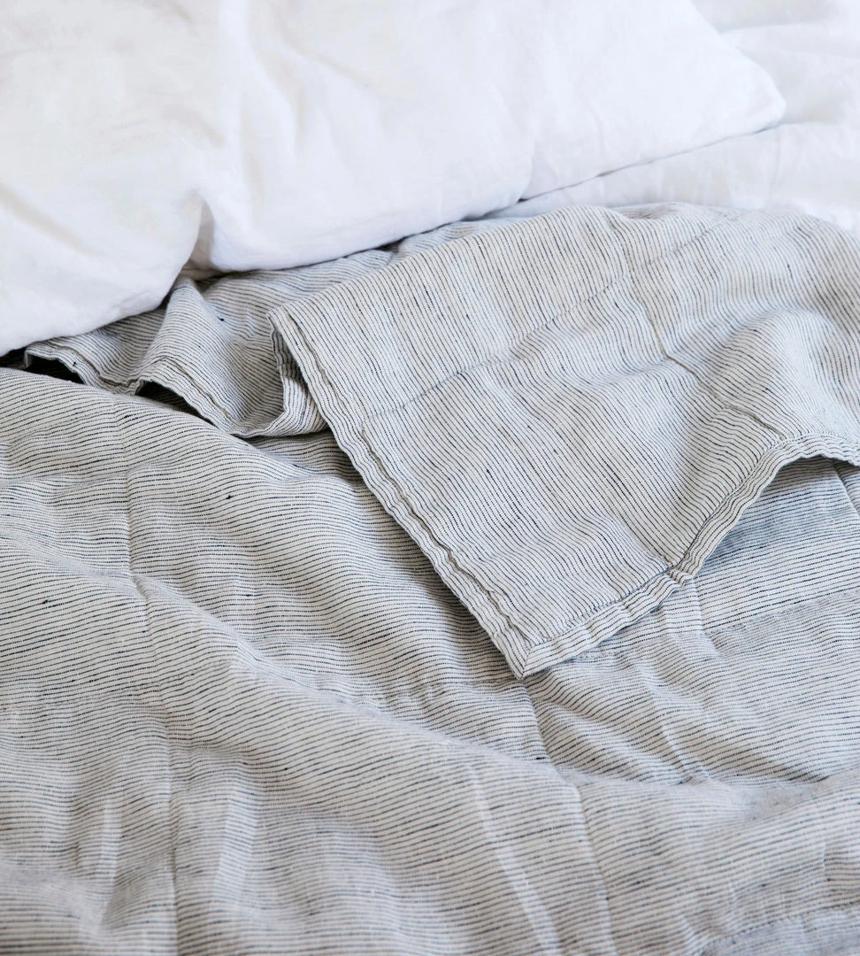 This beautiful Cultiver Quilted Bedcover features a stitched grid pattern and is made from soft, 100% European Flax Linen that is pre-washed for softness and durability. On a Queen bed of an average height, the bedcover drape will fall to the floor. Transitioning from season to season is made easier with our Quilted Bedcover. Layer on top of a duvet cover in colder months or use as a stand alone blanket in Summer.
