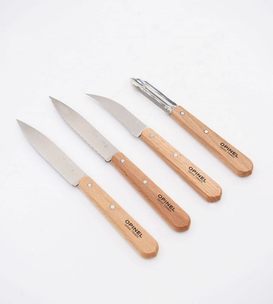 The simplicity of beech wood makes this knife set a must-have in any kitchen. The set contains 4 small knives which cut beautifully and are suitable for everyday use: a paring knife, a serrated knife, a vegetable knife and a peeler.