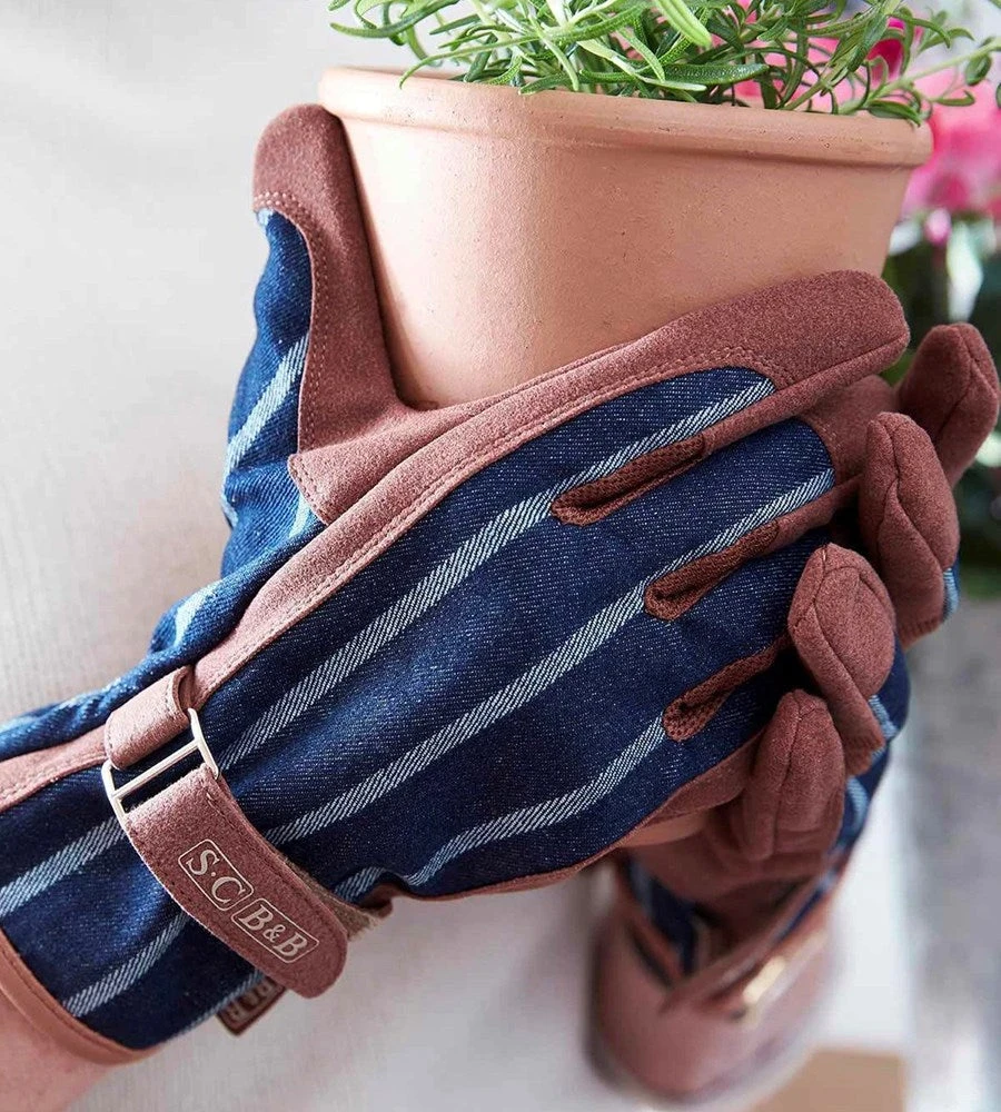 These gloves feature a wealth of thoughtful details to create a really high performance gardening glove. The palms and fingers are made from hardwearing yet ultra-soft fabric that doesn’t go stiff if it gets wet. Stretch mesh between the fingers helps regulate hand temperature and improves dexterity. The outer shell is created in a heavyweight ticking fabric, which gives great flexibility of movement.