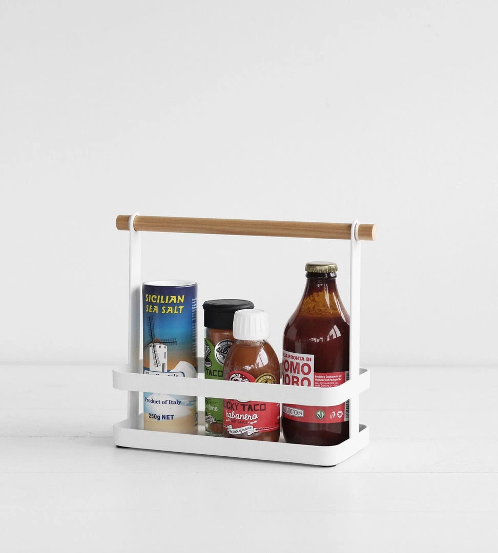 This steel and wood seasoning rack by Yamazaki is a decorative addition to the kitchen and can store a variety of items and has room for many different spices or oils. This sturdy design makes for easy transportation around the kitchen or home.