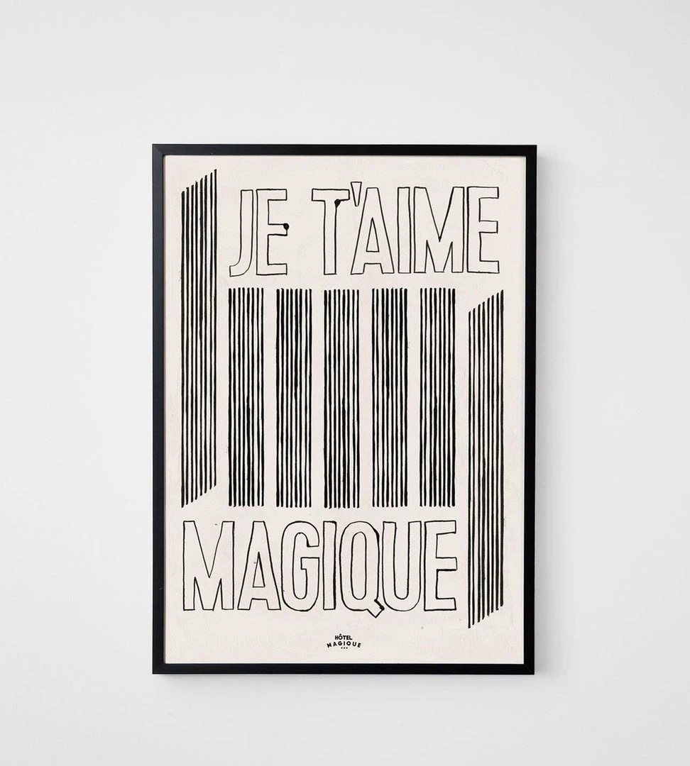 The Je T’aime Magique print by Hotel Magique looks wonderful in the home and brings a bit of quirkiness to the space it is displayed in.Â