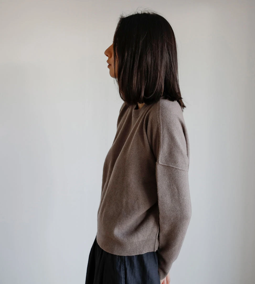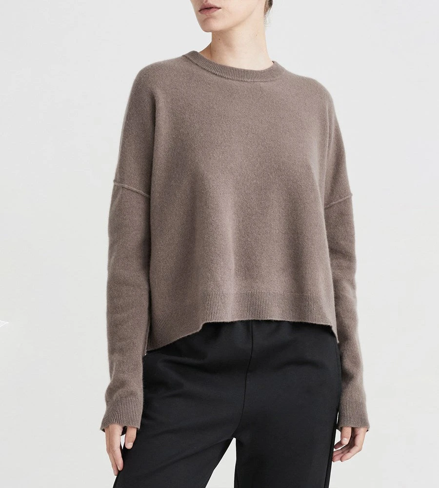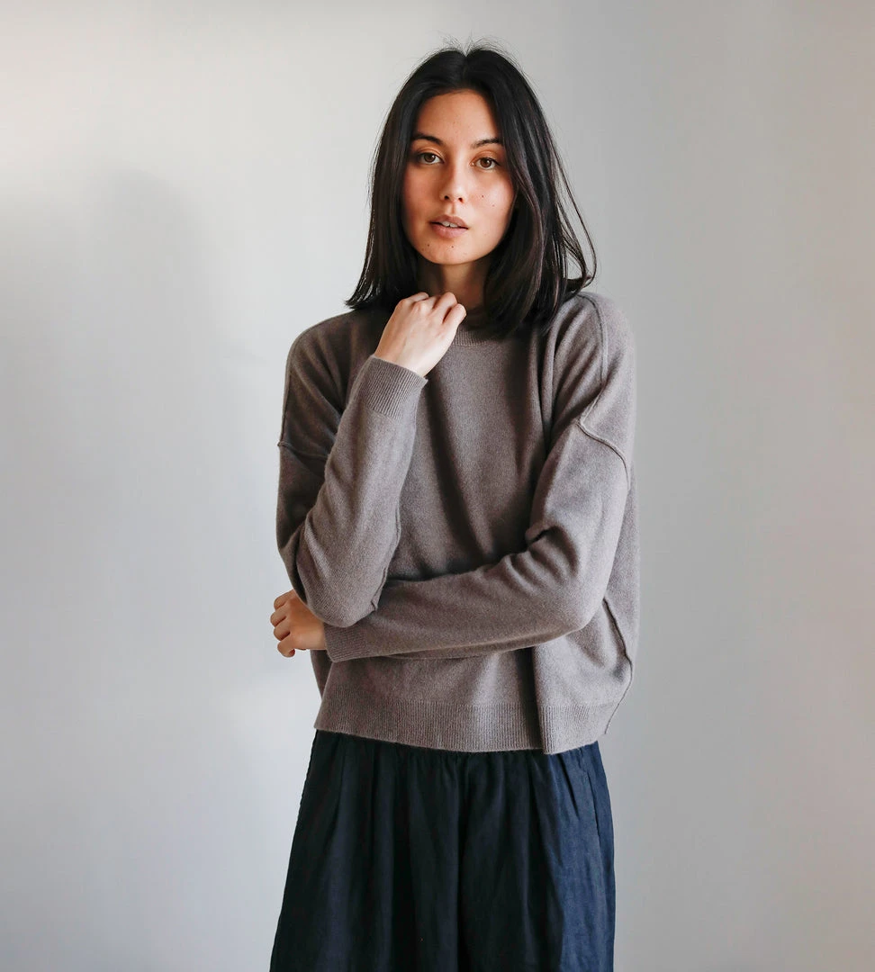Equal parts relaxed and luxurious, Jac + Jack’s Steely Sweater is spun in a sumptuous soft wool cashmere blend. This cropped crew neck shape is further enhanced by slouched drop shoulders with exposed seam detailing and slim sleeves.  Create a modern silhouette and wear with cropped wide leg pants.