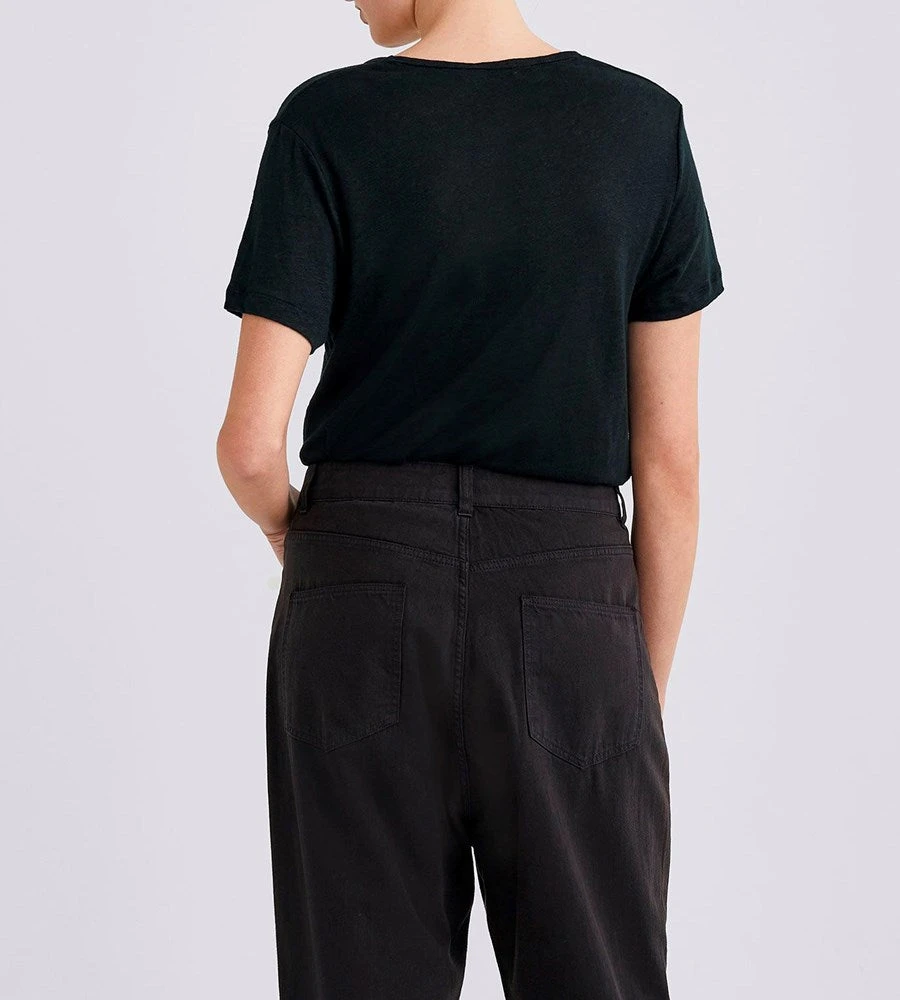 Borrowed from the boys – this style is an update on Jac + Jack’s Dempsey Tee. This short sleeve crew neck t-shirt is cut for a flattering, relaxed fit. Made from slubbed mid weight linen jersey, this style has a ribbed neckline and cut square at the hem. Dressed up or worn casually this is an item you will reach for almost every day.