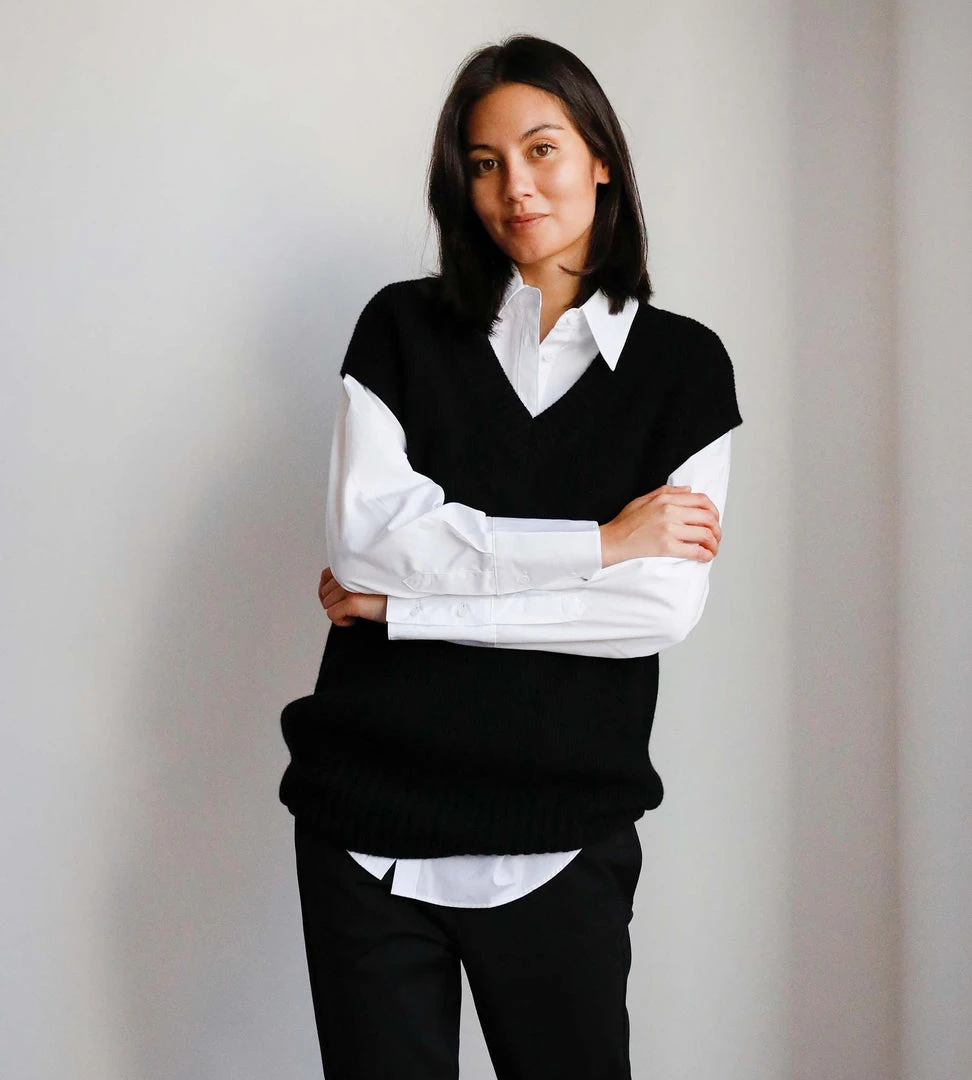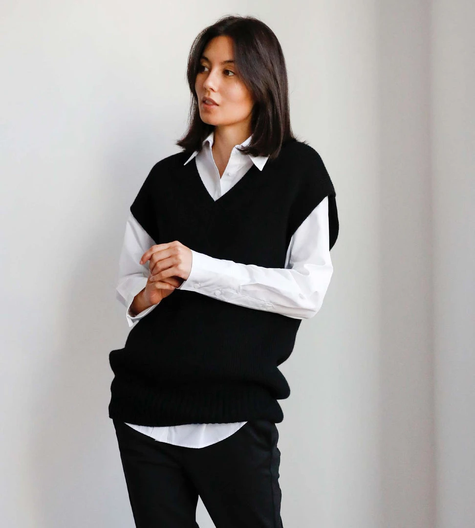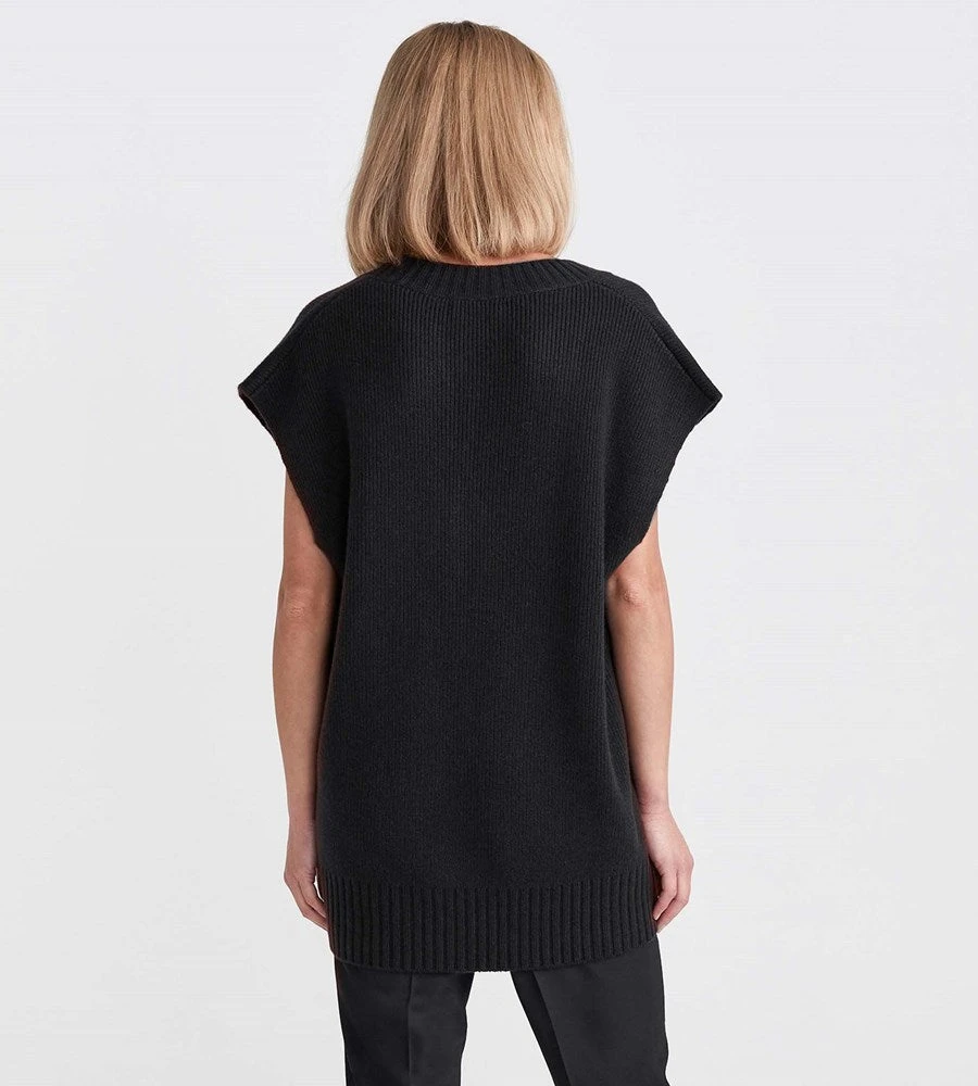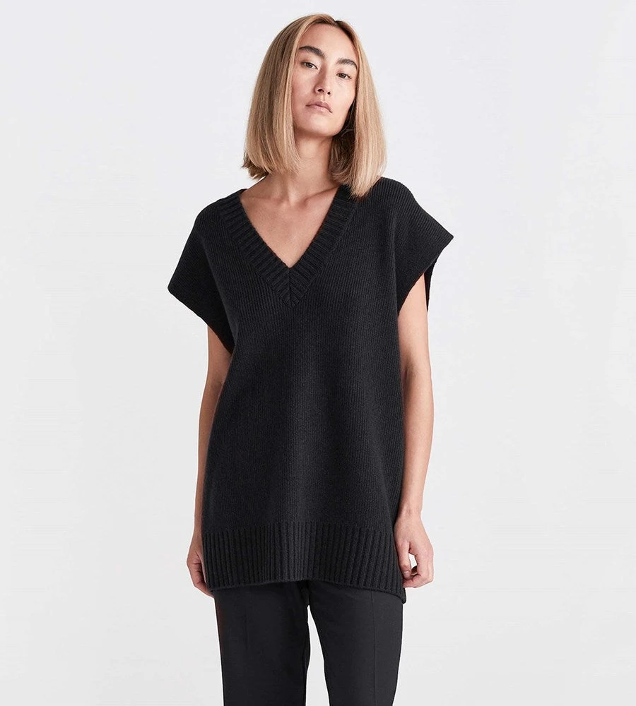 A statement piece of dramatic proportion. This oversized 100% cashmere v-neck vest by Jac + Jack is the fashion moment your wardrobe needs. Crafted from a supremely soft cashmere, this piece strikes the perfect balance between cosy and chic. Wear back with fitted pants to accentuate the silhouette.This piece is designed for an oversized fit. For a slightly more fitted look take the next size down. To clean this item, cold hand wash or dry clean.